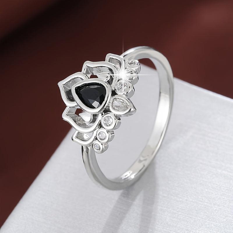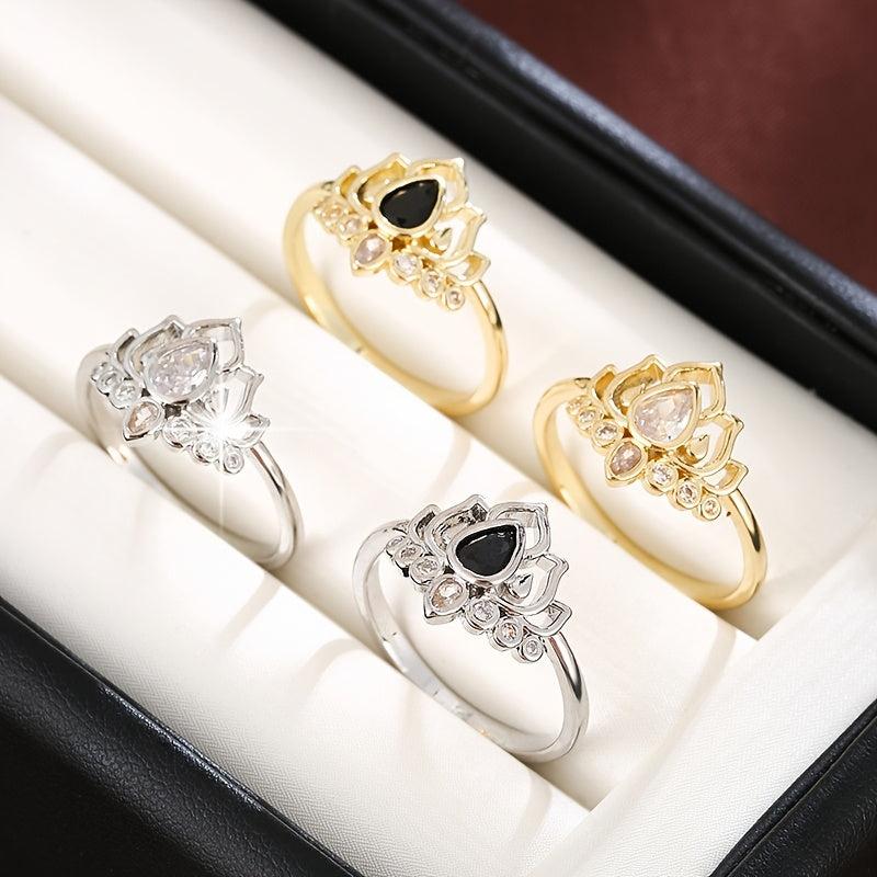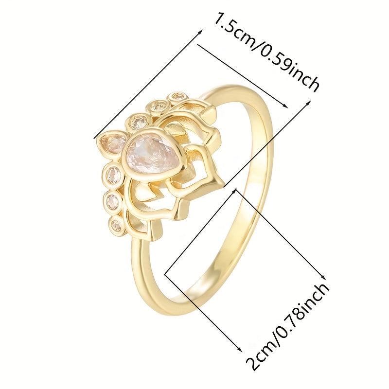 Adorn your finger with this exquisite lotus-shaped ring featuring synthetic zirconia for a touch of elegance.