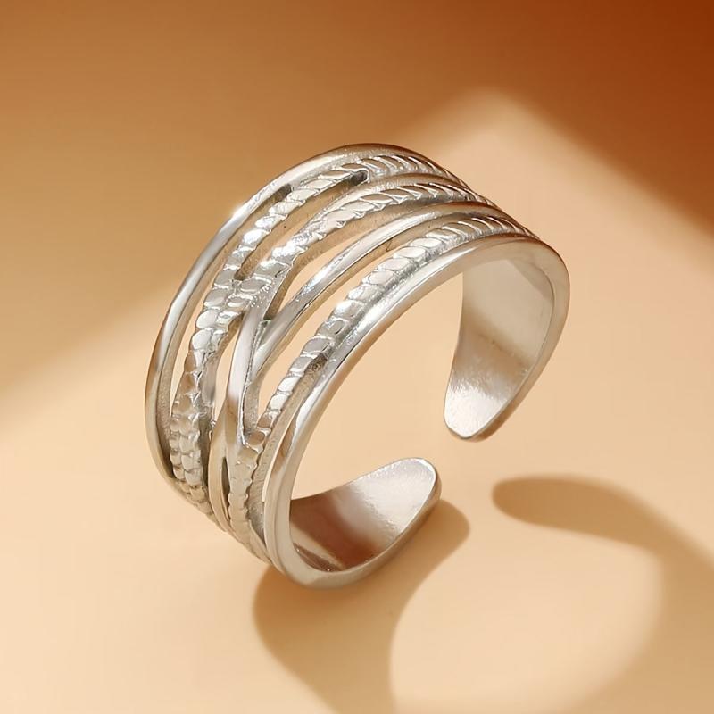 Elevate your style with this versatile and stylish hollow art ring made of stainless steel.