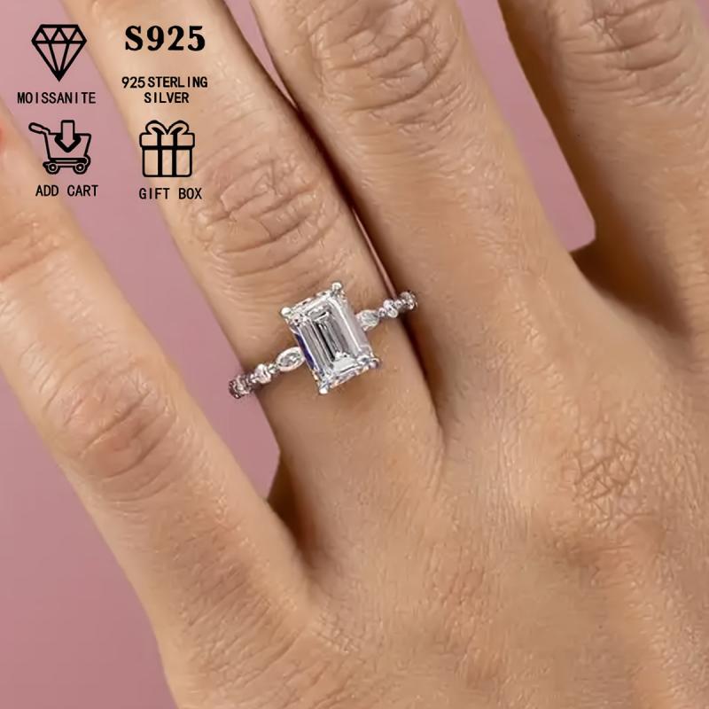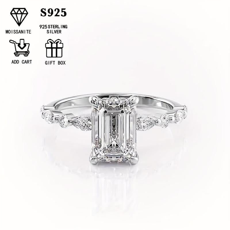 This elegant women's wedding ring features a half set design with 2 carats of Moissanite on a low allergy S925 silver band. Perfect for parties, banquets, or a special proposal engagement.