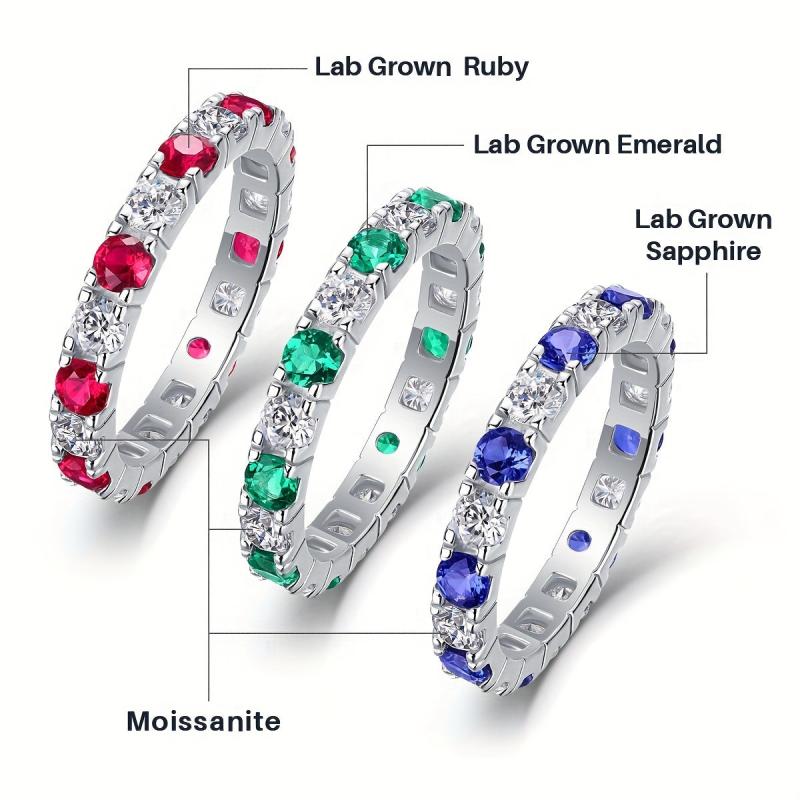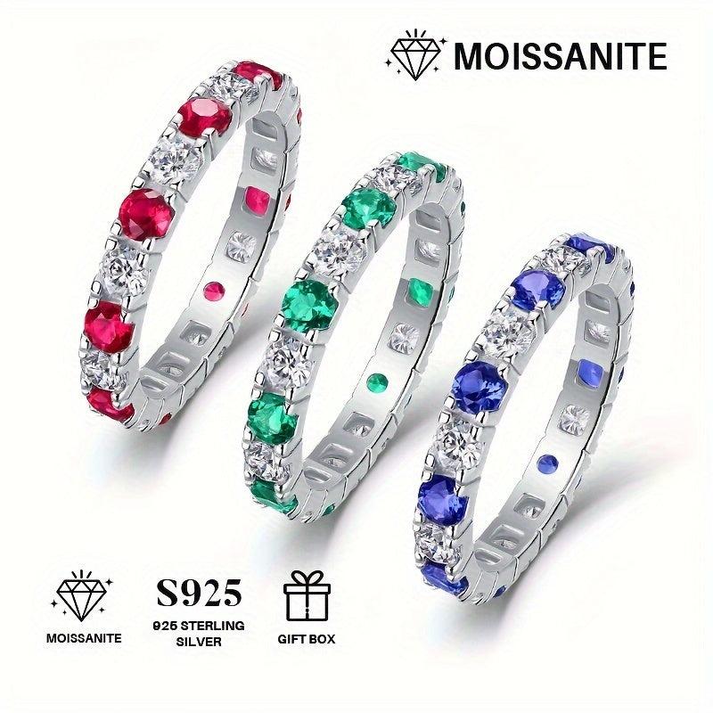 This stunning ring is made of high-quality moissanite and lab-grown emerald, ruby, and sapphire set in 925 sterling silver. Perfect for everyday wear or special occasions.