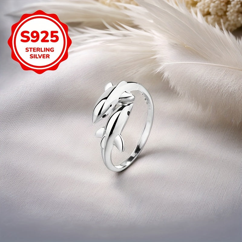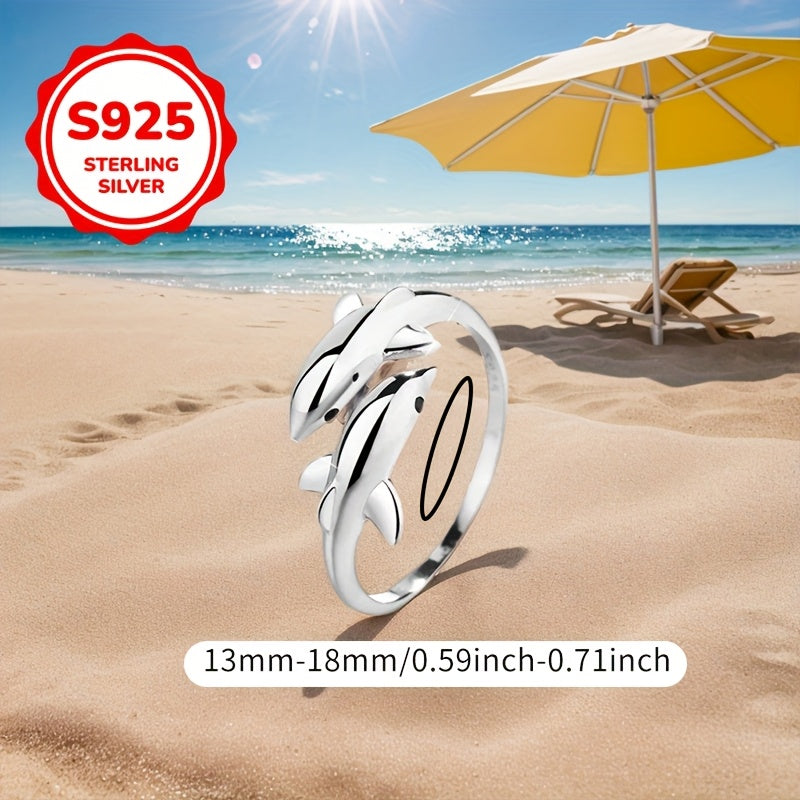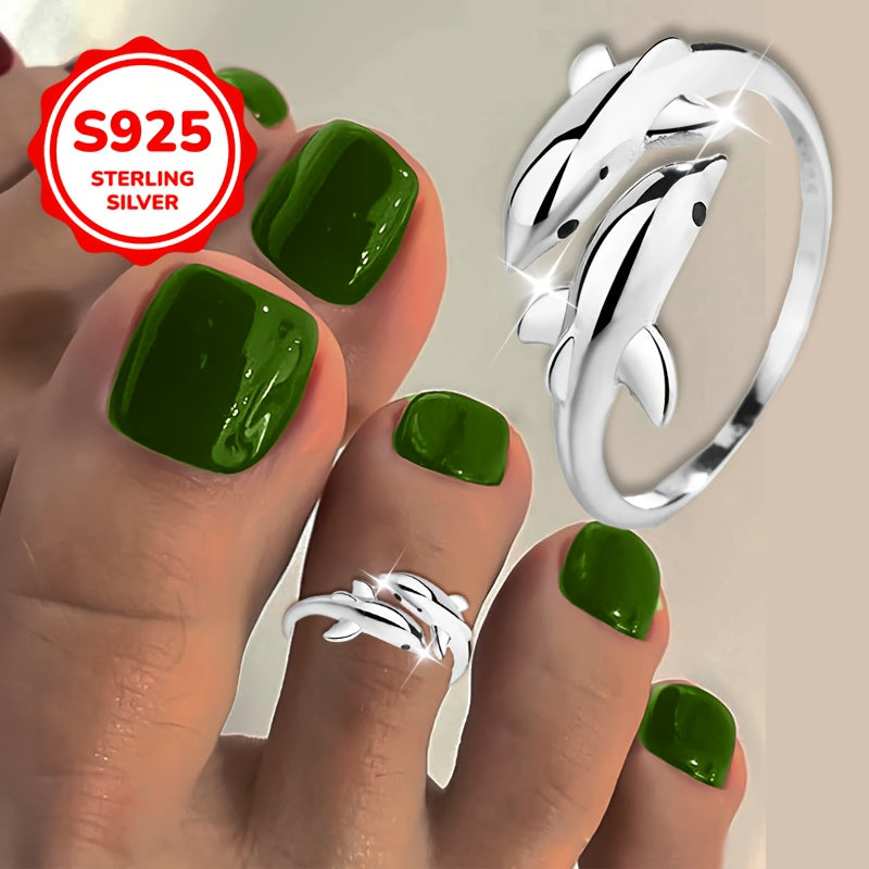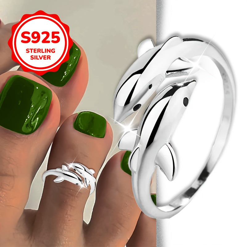 Elegant S925 silver toe ring featuring a beach-themed design with double dolphins. Ideal for Valentine's, Mother's, wedding season, and summer.