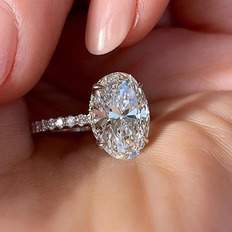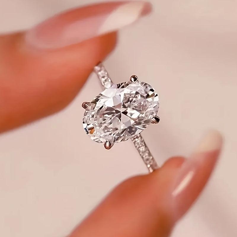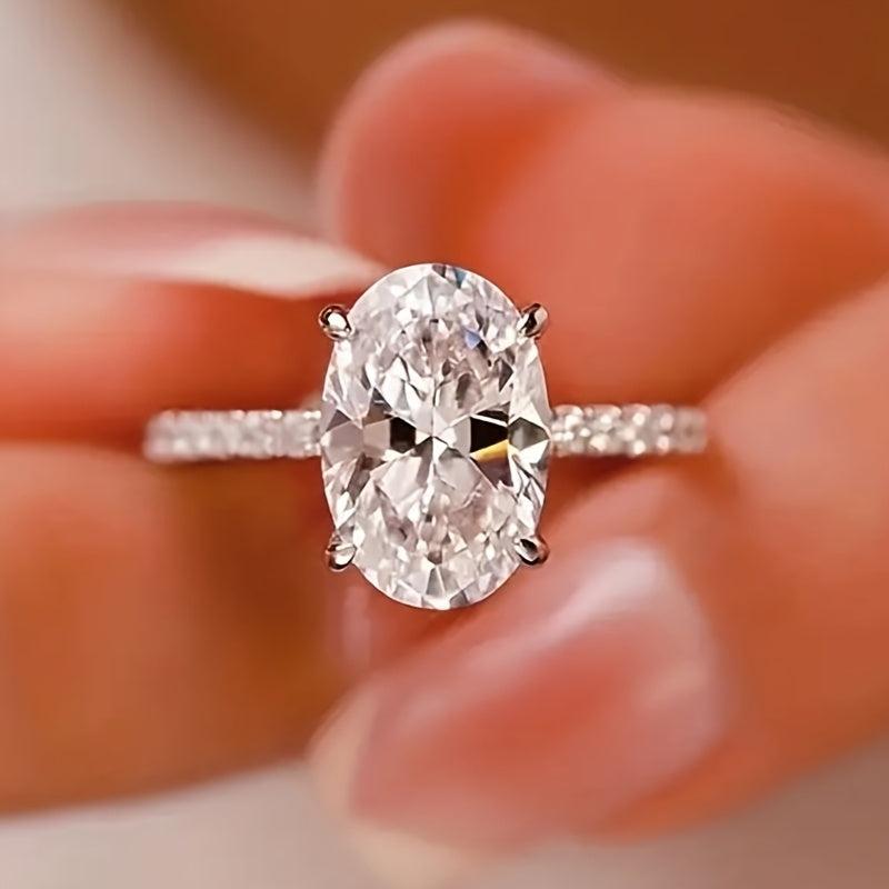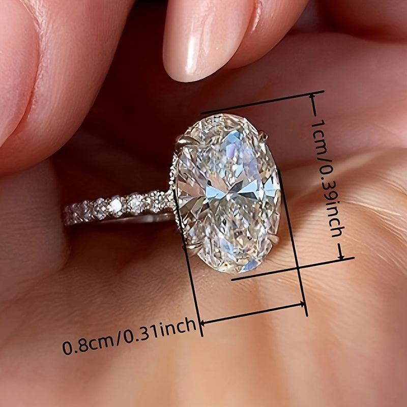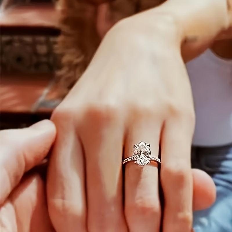 This classic engagement ring features an oval cut synthetic zirconia set in a 4-prong setting on a golden plated copper band. Perfect for all seasons and makes a great gift for April birthdays or holidays.