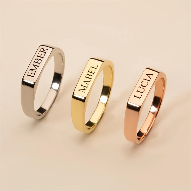 Surprise your loved one with this stunning square bar ring featuring customized engraving. Ideal gift for girlfriend, wife, or mother on special occasions like anniversary.