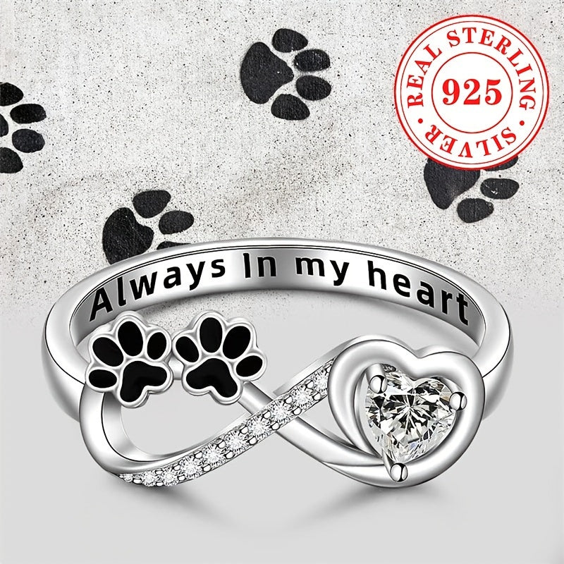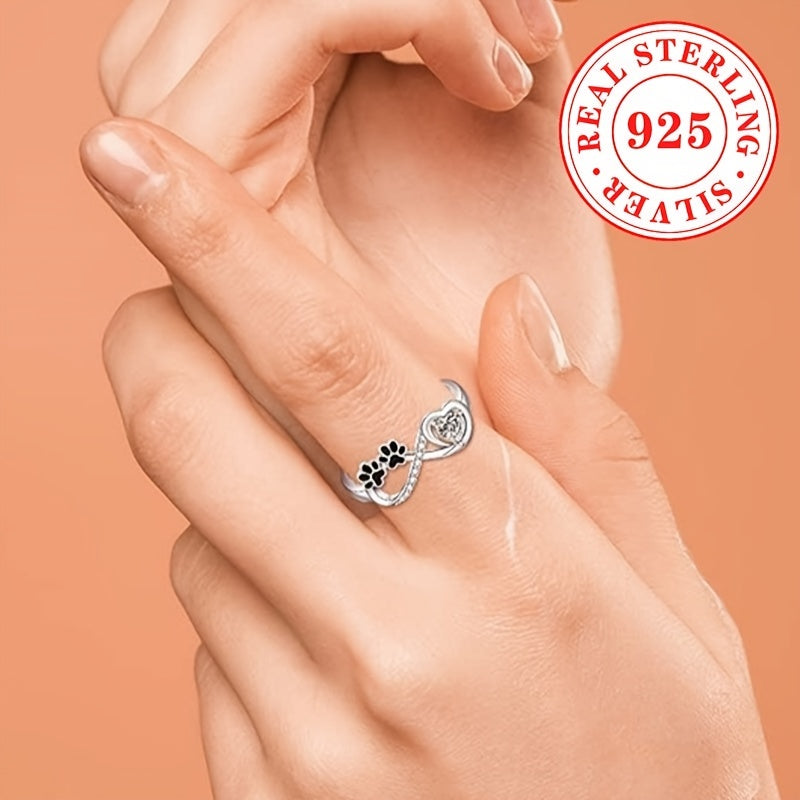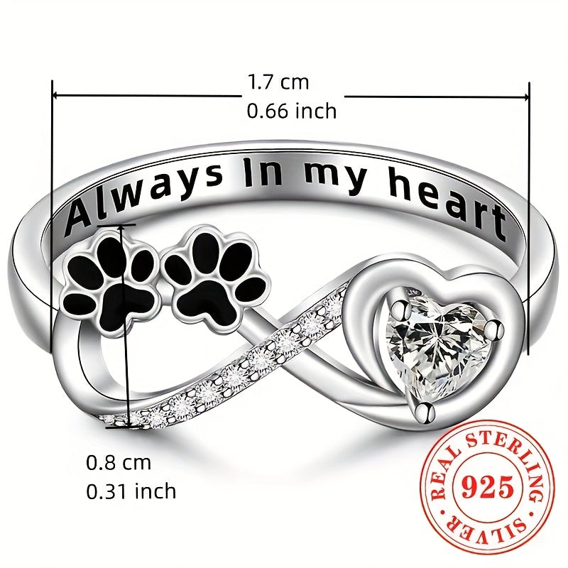 This beautiful ring features a love symbol with a synthetic zirconia animal paw print enamel design. Perfect for daily casual wear.