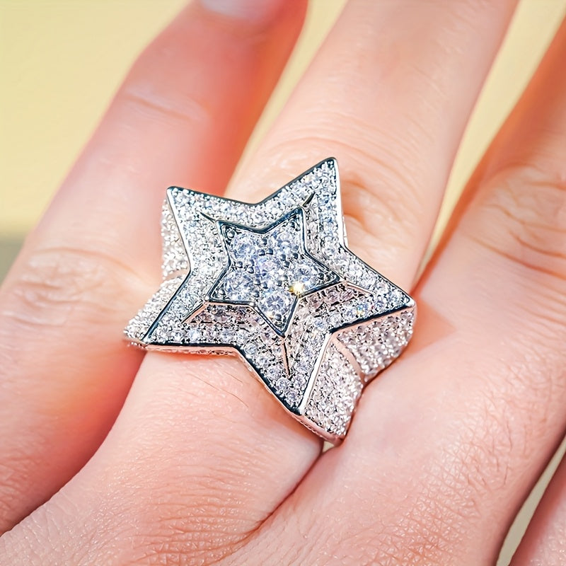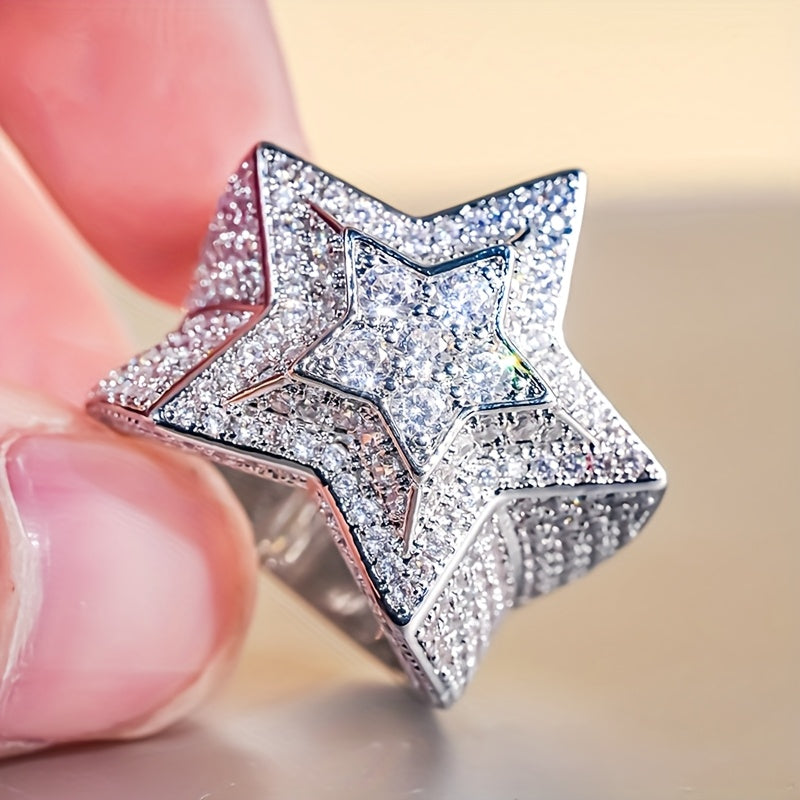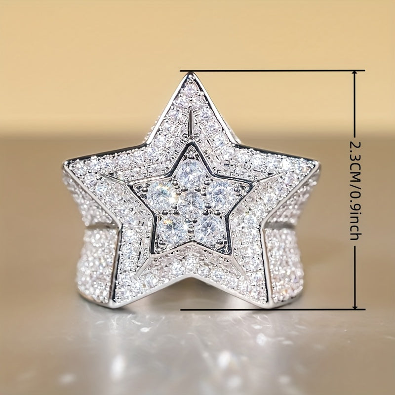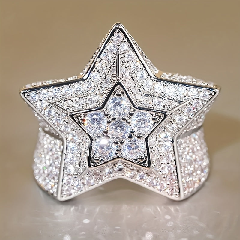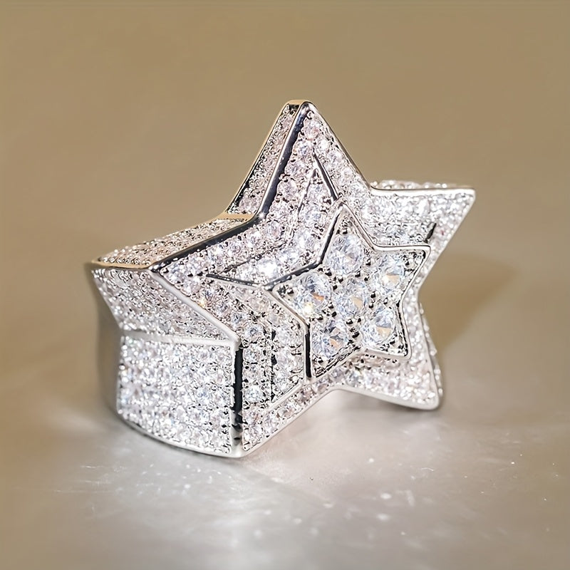 Elegant star-shaped wide band ring with sparkling cubic zirconia, perfect for weddings, daily wear, and Ramadan parties. Made of high-quality copper co material.
