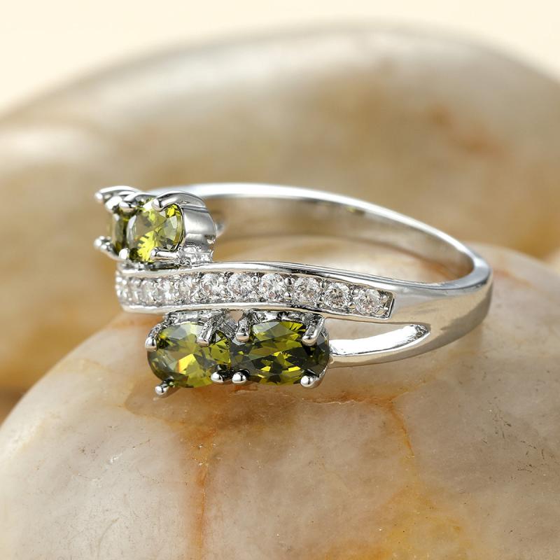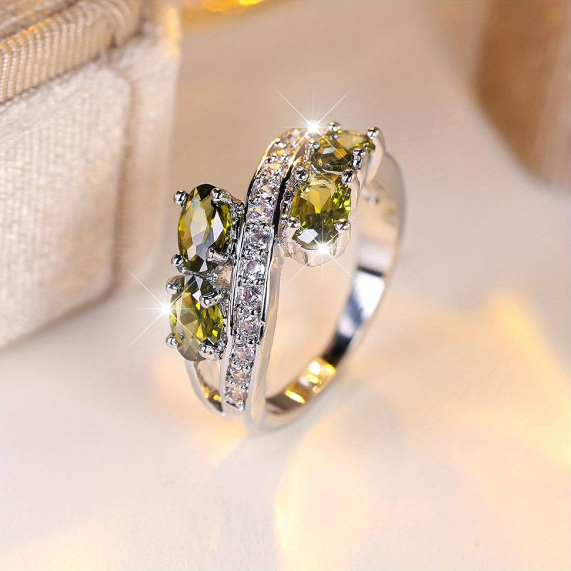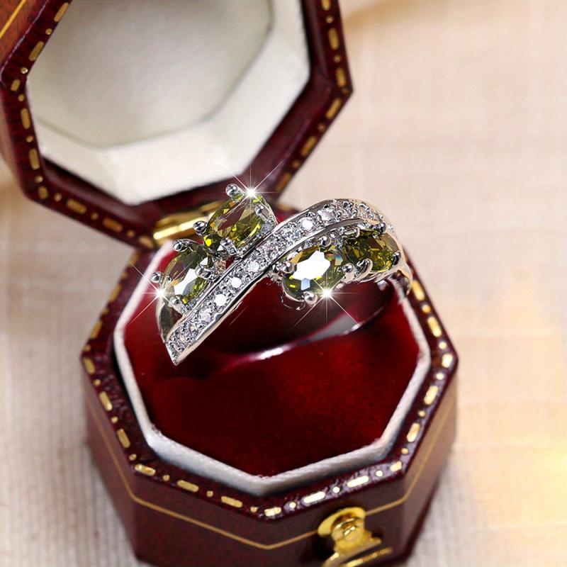 This stunning green and zirconia band ring is perfect for engagements, banquets, parties, or as a gift. Its romantic design adds elegance to any outfit.