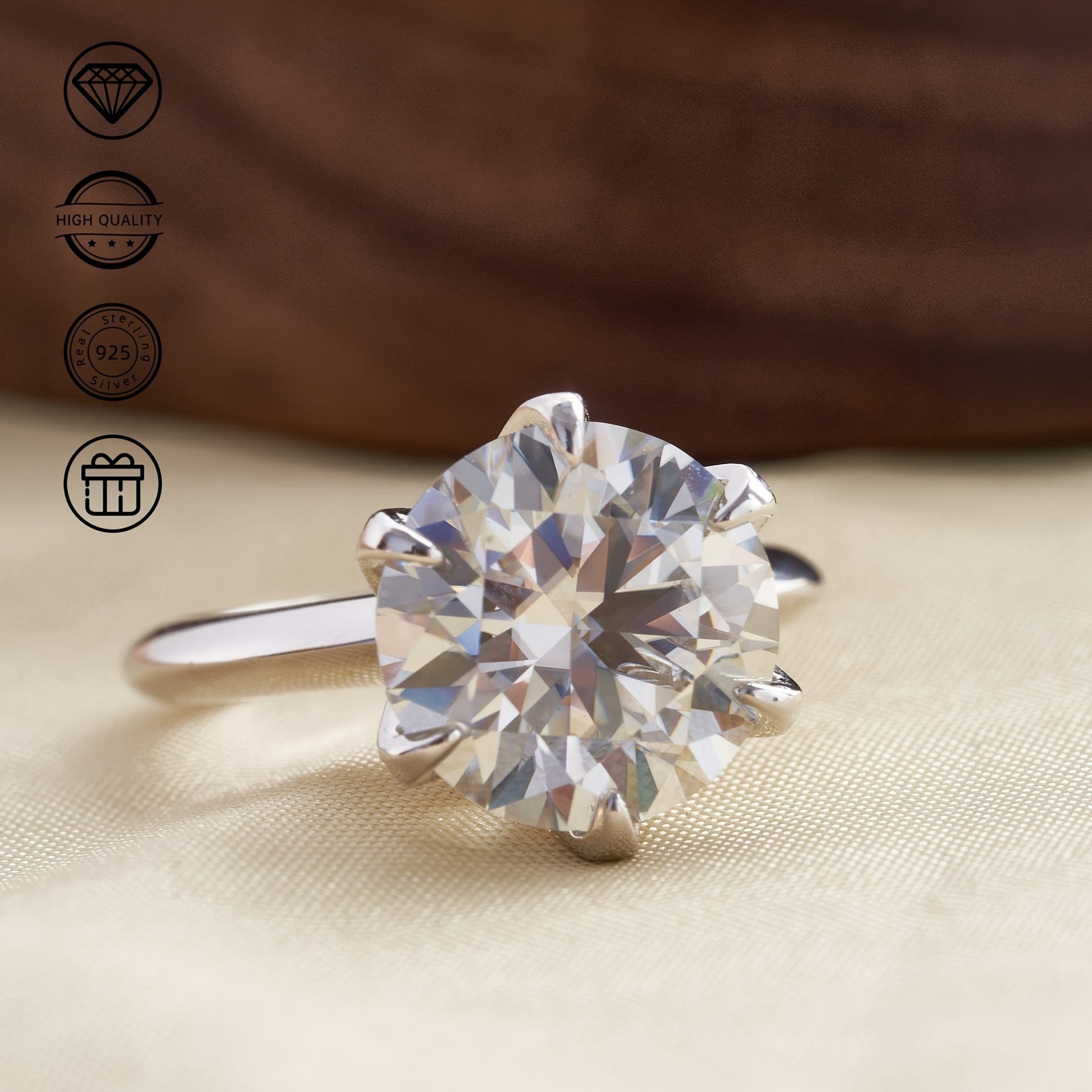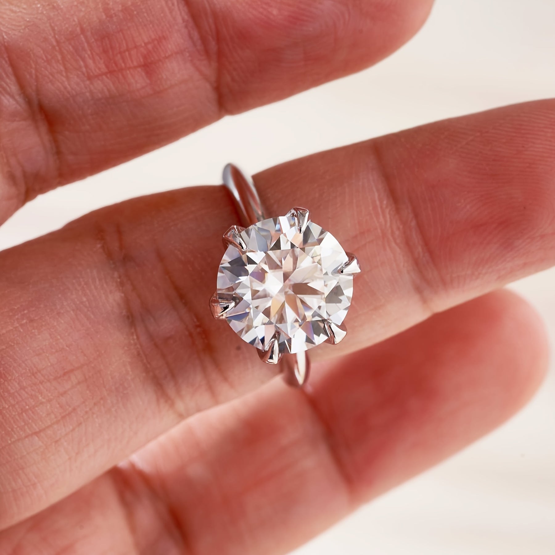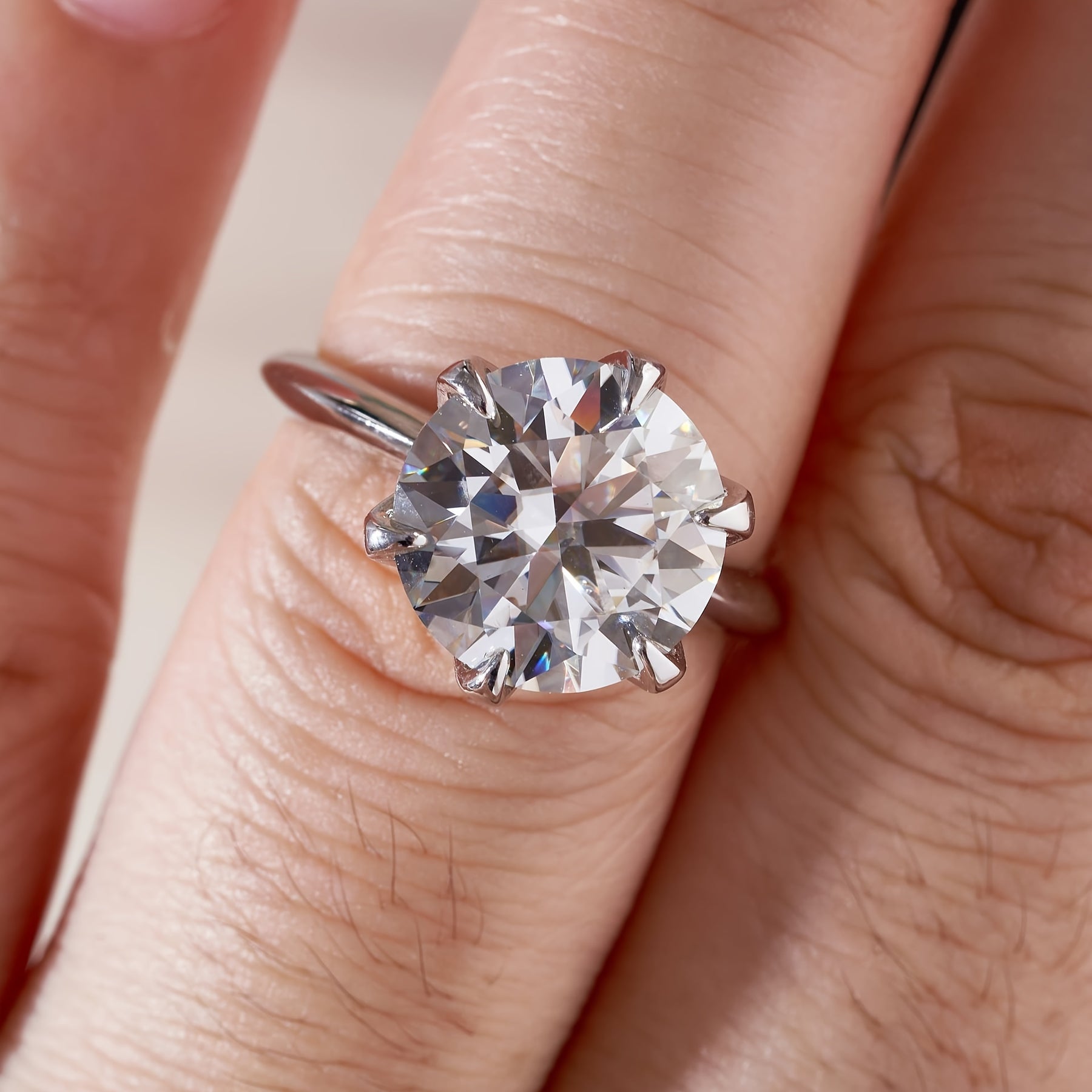This classic S925 silver ring features a 5ct round moissanite stone set in a six-prong setting. Perfect for any occasion, this versatile hand jewelry makes a great gift for anniversaries.