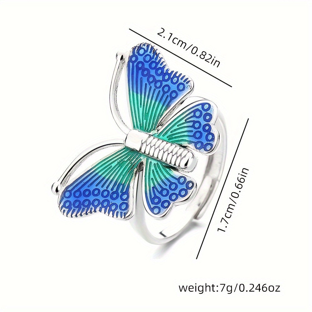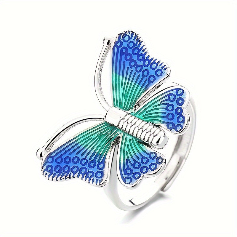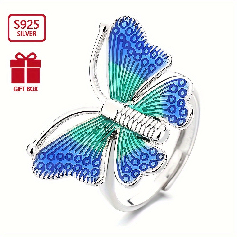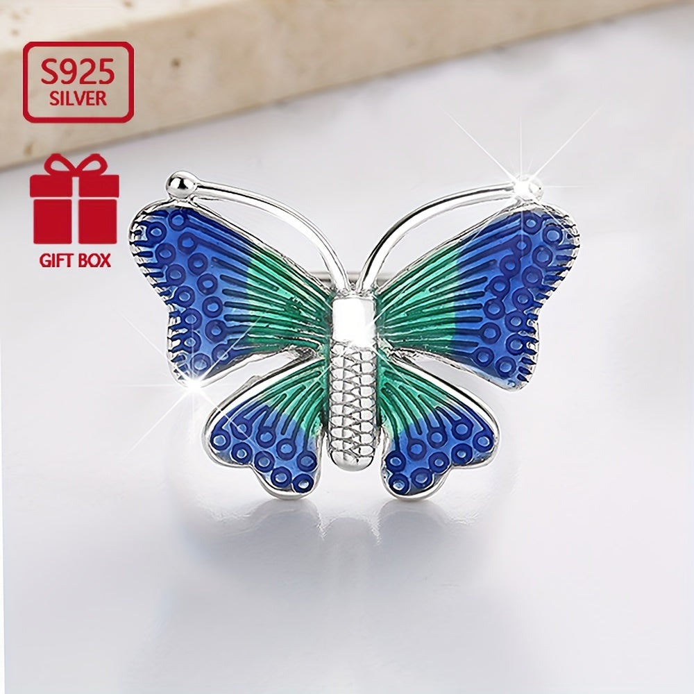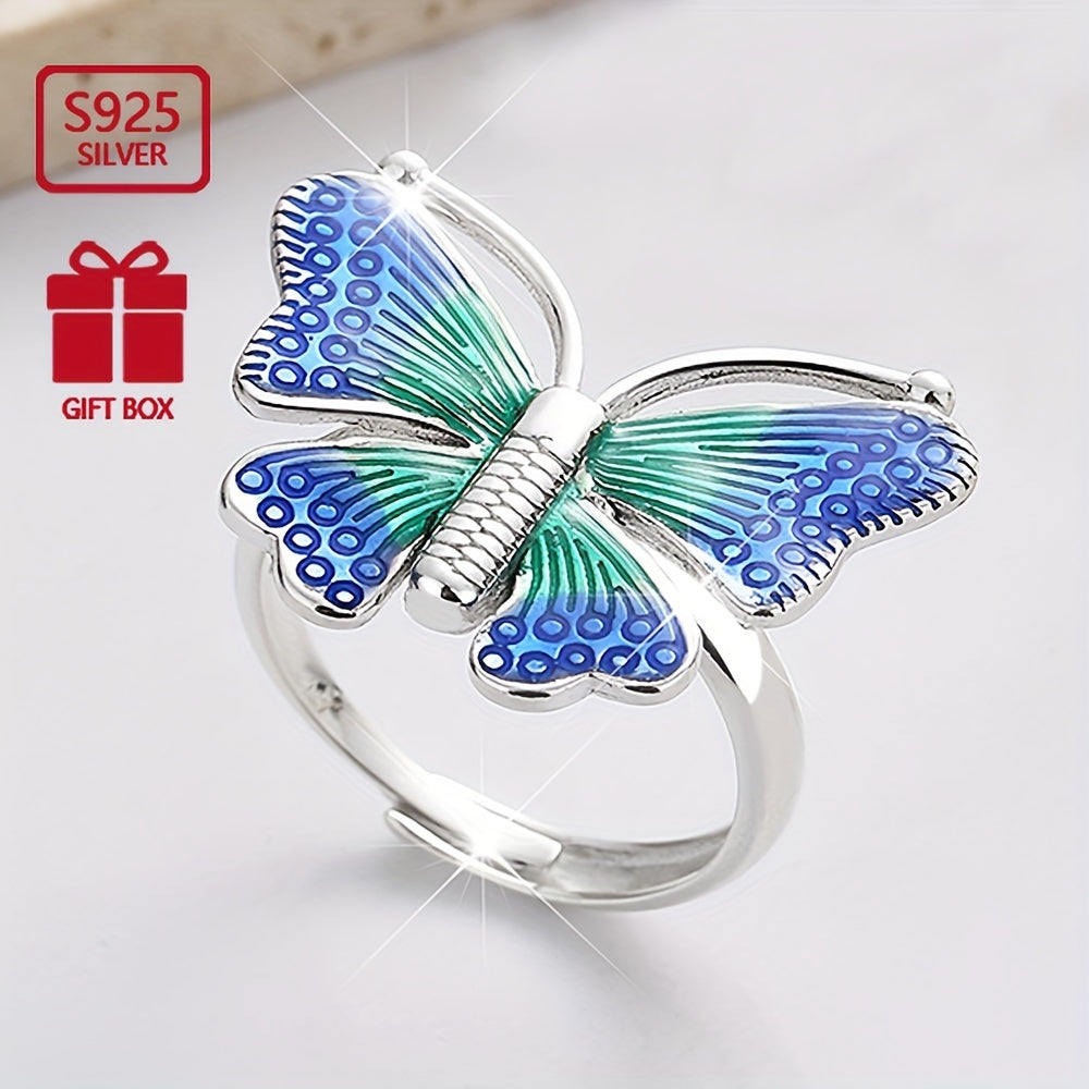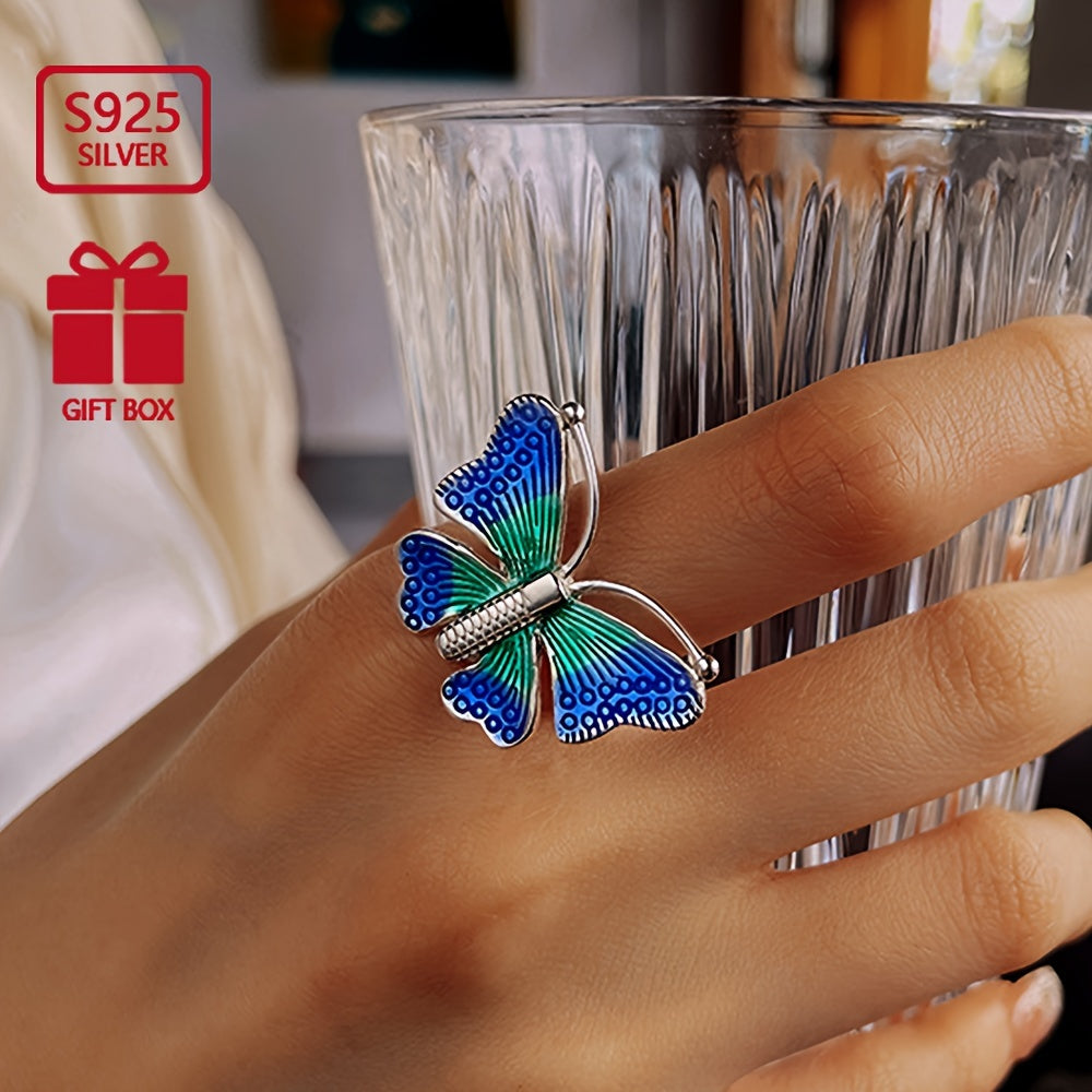Dieser exquisite S925 Pure Silvery Ring verfügt über farbenfrohe tanzende Schmetterlinge, perfekt für Bankette und Versammlungen. Der Ring wurde in einem ethnischen Stil mit einem einzigartigen Tropfkleberfinish entwickelt.