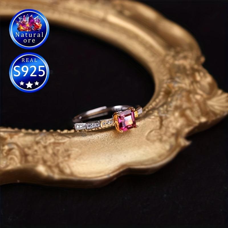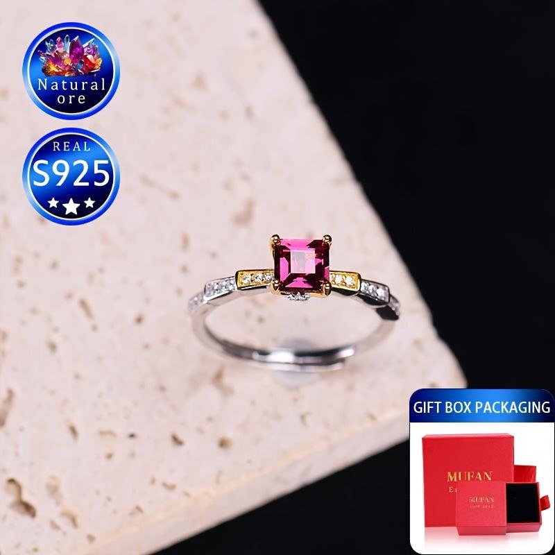 S925 Silver Red Garnet Gemstone Ring, Adjustable Gift for Her