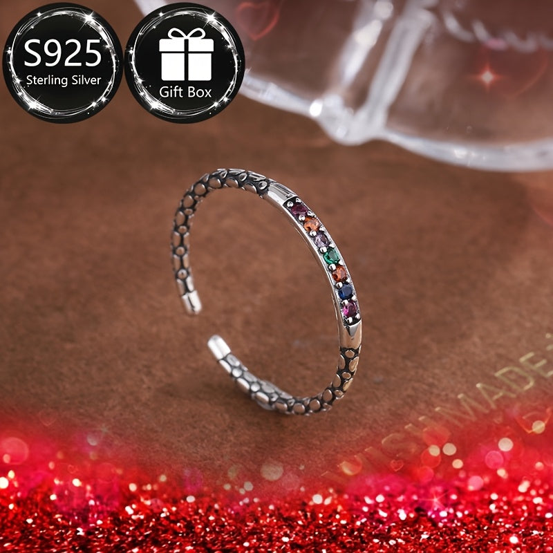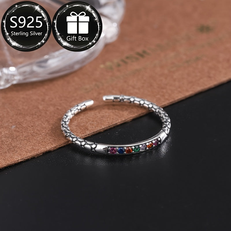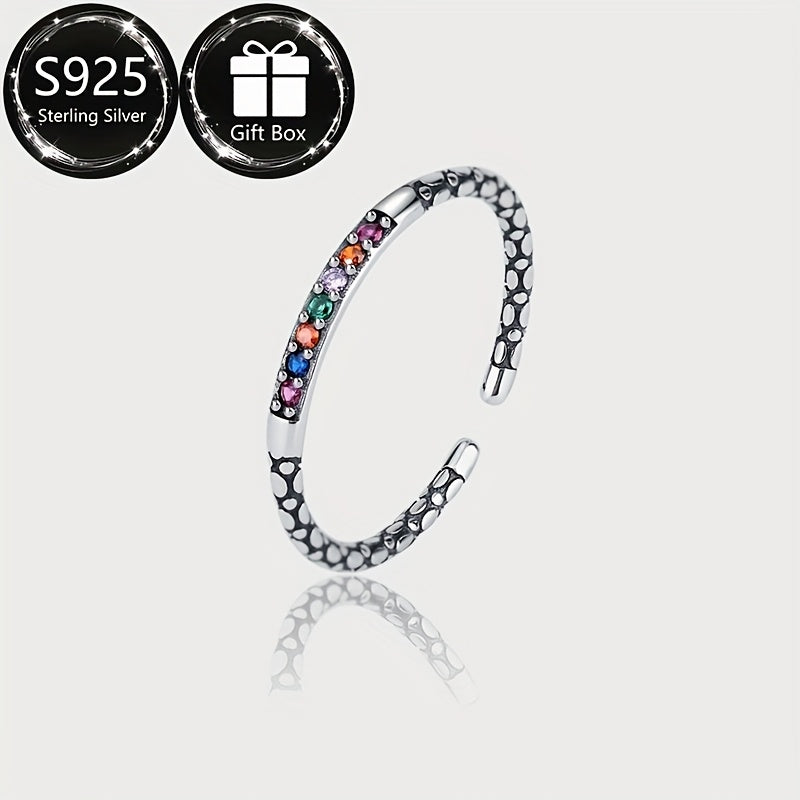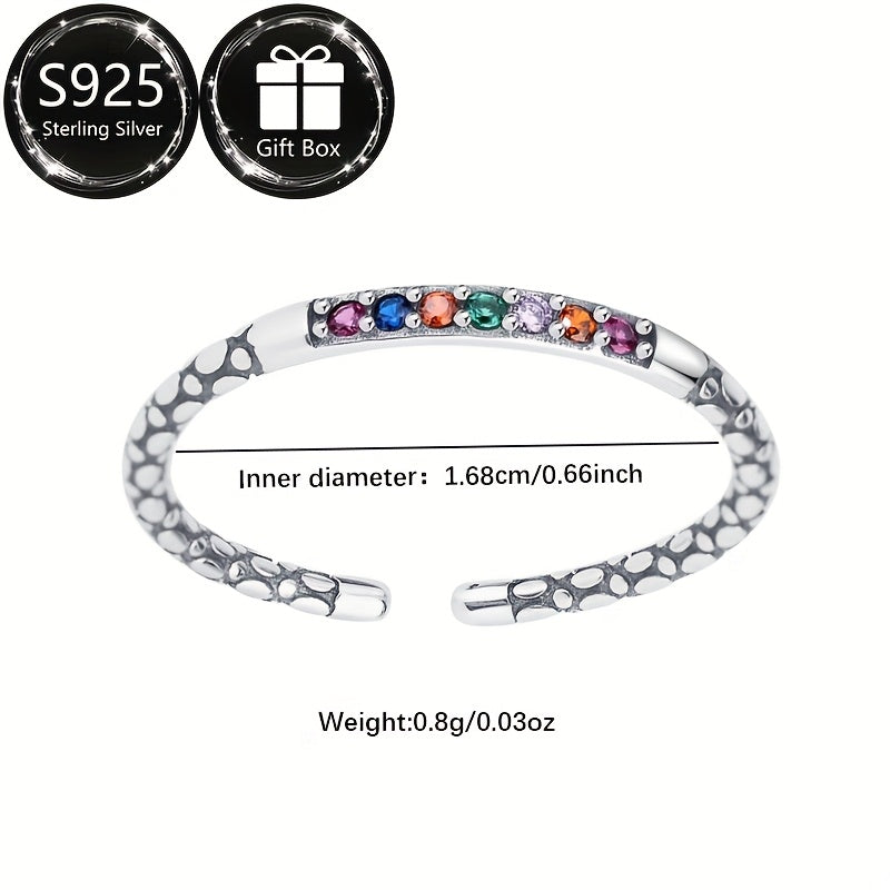 This adjustable index finger ring features a rainbow synthetic cubic zirconia in a boho style design. Perfect gift for daily wear.