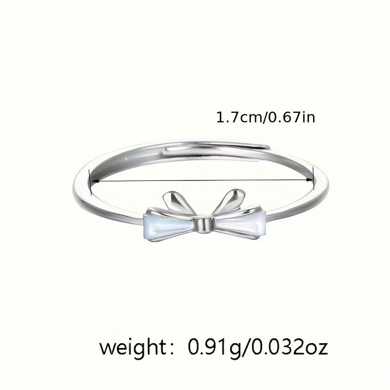This lovely S925 sterling silver bow ring is a perfect accessory for daily wear. It makes a great gift for mothers or as a graduation gift. Weighing only 0.91g (0.032oz), it is lightweight and comfortable to wear.