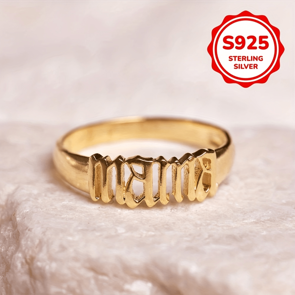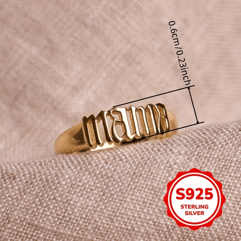 This S925 sterling silver Mama promise ring is an ideal gift for mothers. The script design adds a touch of elegance, perfect for daily wear. Show your appreciation with this polished finish Mother's jewelry piece.