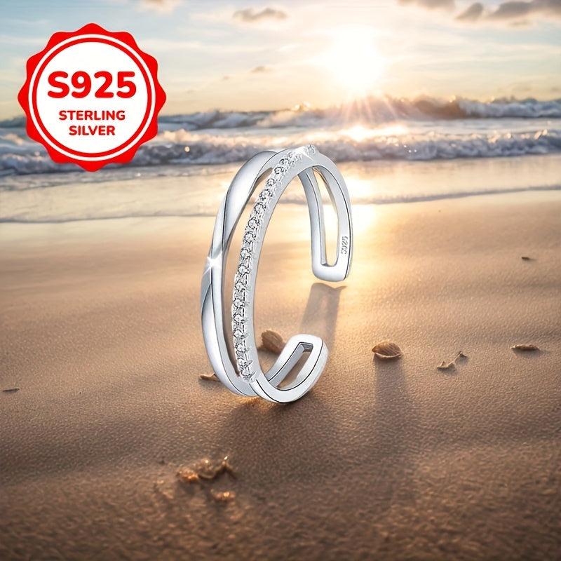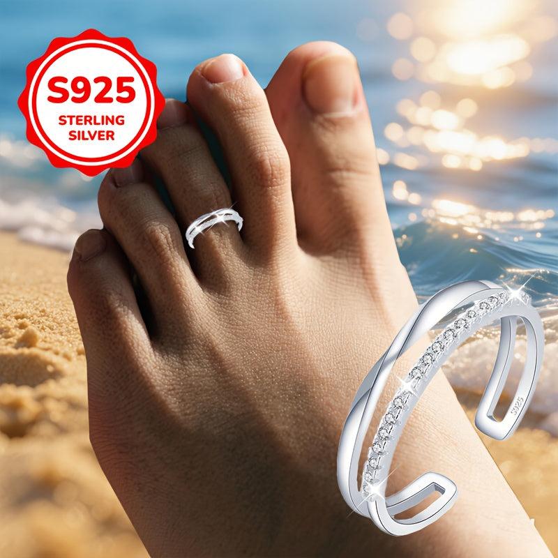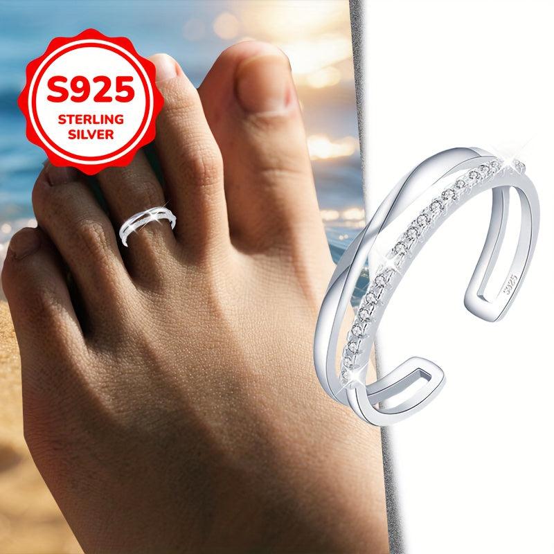 Add a touch of elegance to your summer look with this stylish S925 sterling silver open toe foot ring. The unique spiral double layered design features twisted elements and synthetic cubic zirconia for added sparkle.