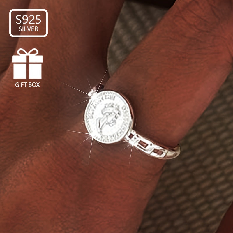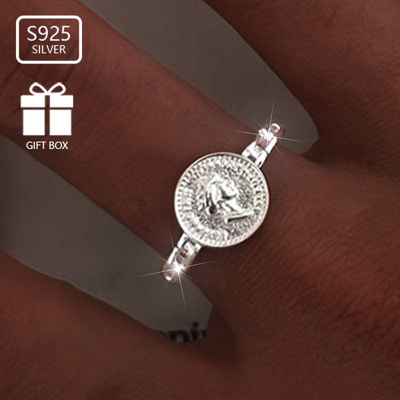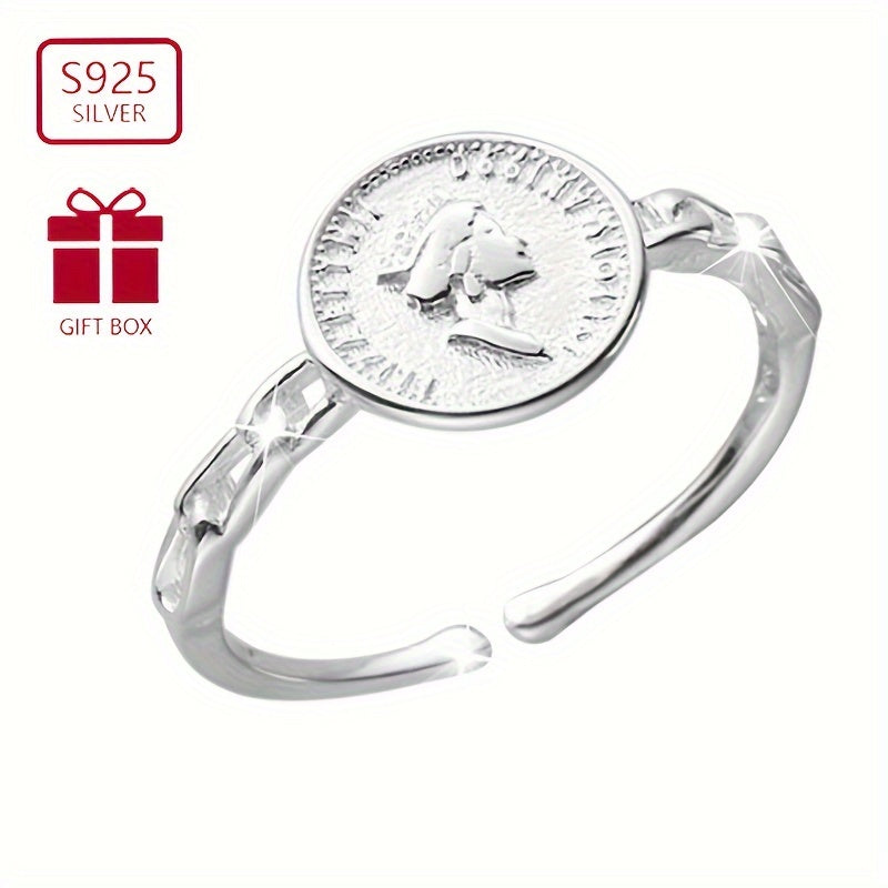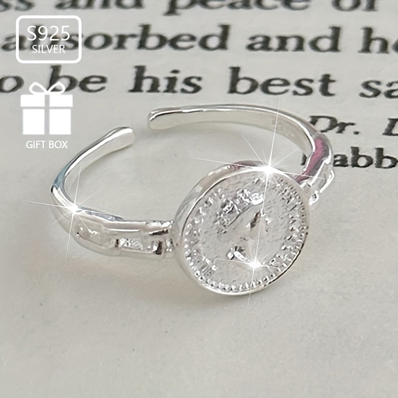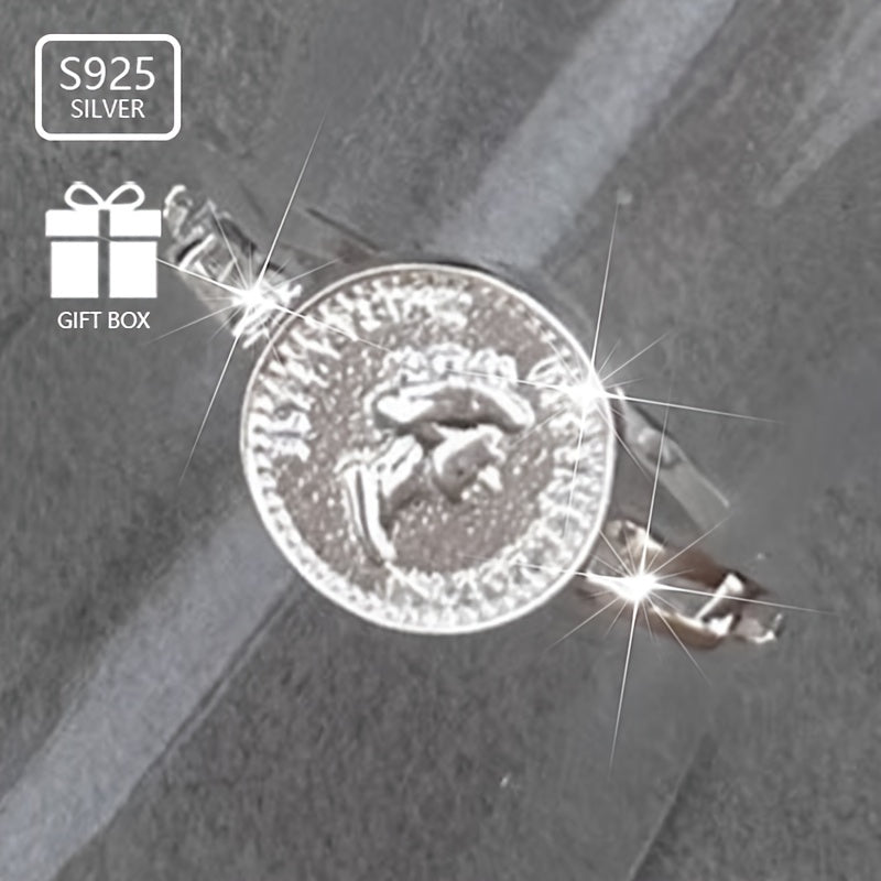 S925 Sterling Silver Portrait Round Sign Ring for Women