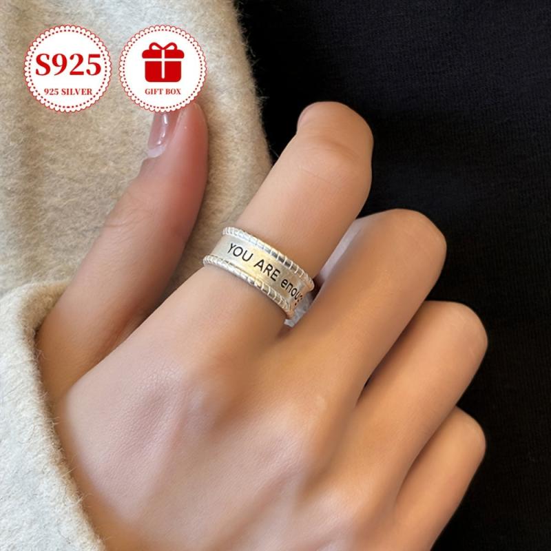 S925 Sterling Silver Wide Band Letter Ring Unisex Gift with Anti Oxid