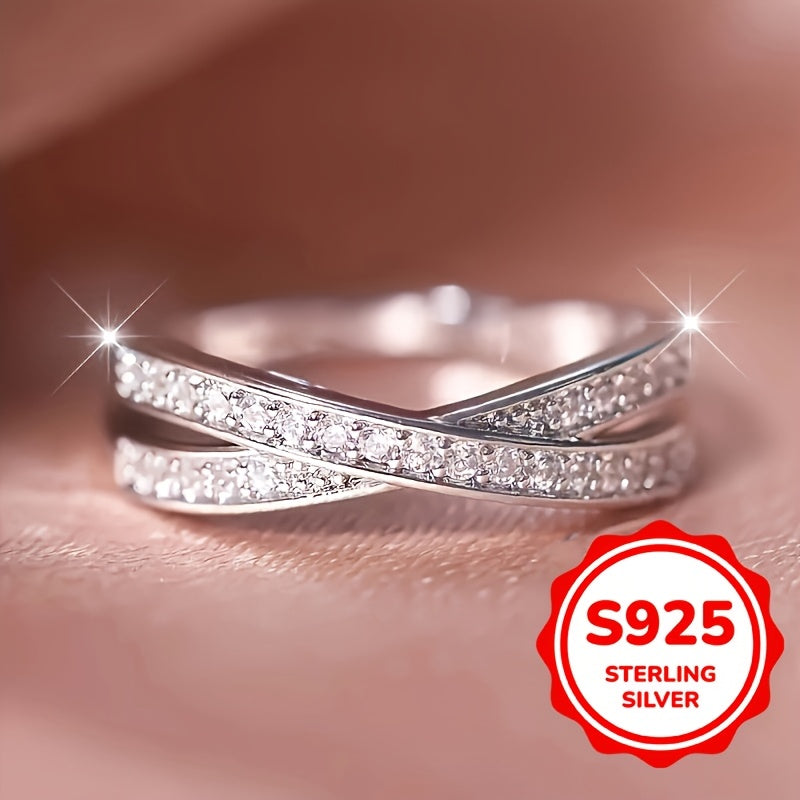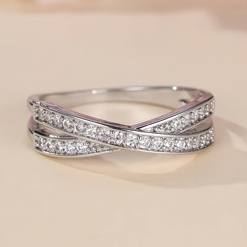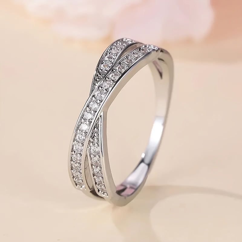 Minimalist promise ring with shiny synthetic zirconia stones, perfect for engagement or daily wear.