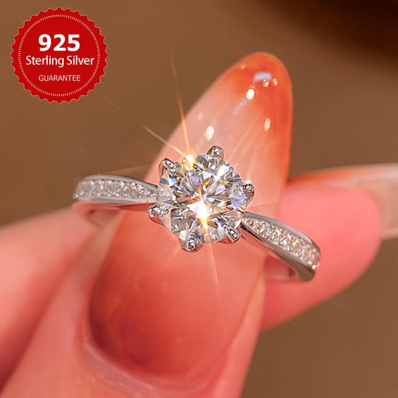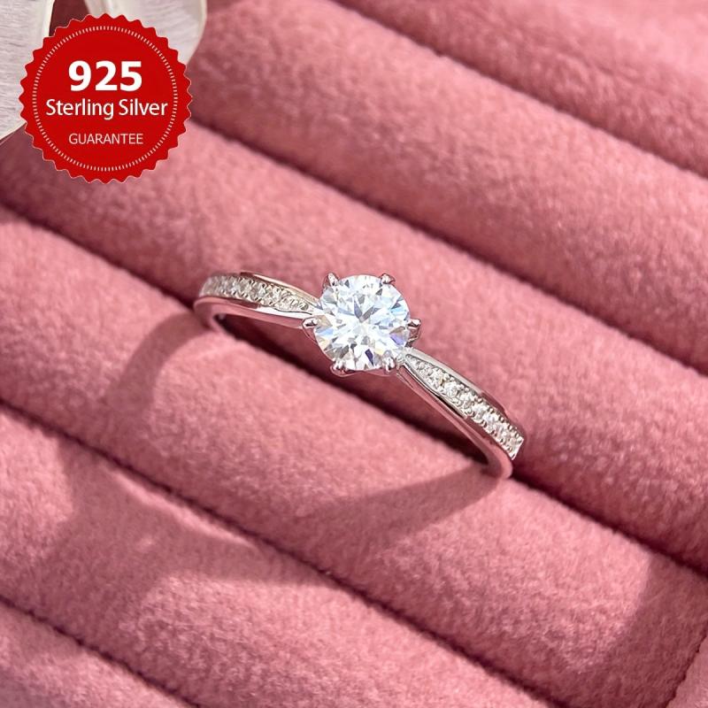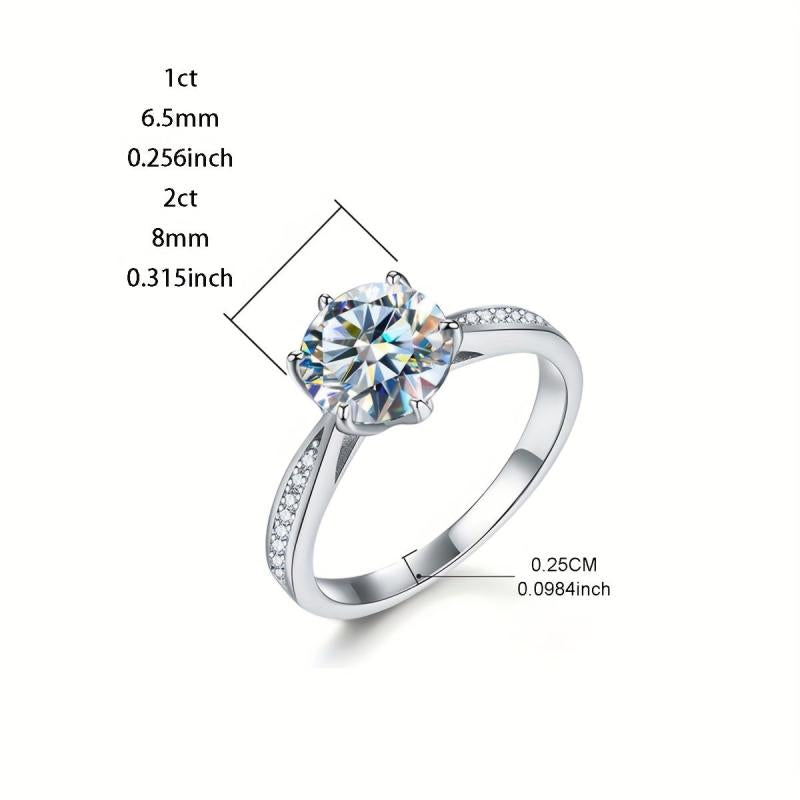 This stunning ring features a sparkling Moissanite stone set in high-quality s925 Sterling Silver. Perfect for engagements, weddings, and anniversaries, this ring will add a touch of elegance to any occasion.