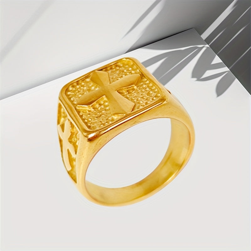 Add a touch of elegance with this unique stainless steel cross ring. Suitable for daily wear or as a festive gifting option.