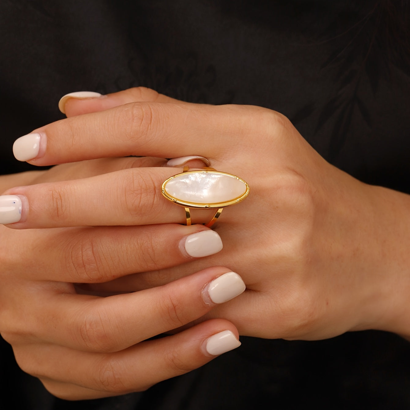 Elegant and stylish ring featuring natural shell, made of high-quality French 304 stainless steel. Perfect for parties, banquets, or as a special gift for women.