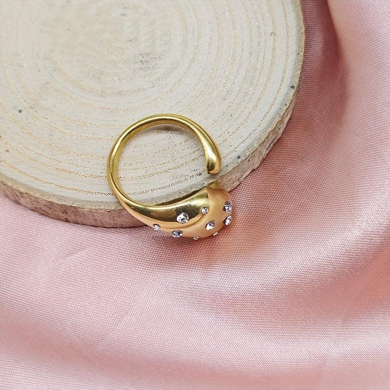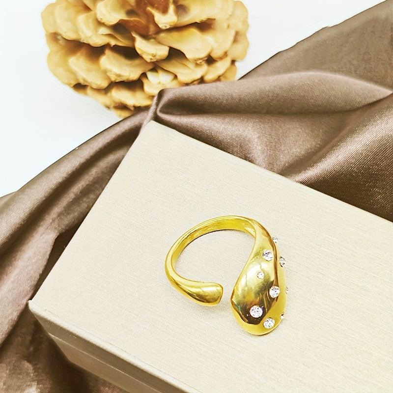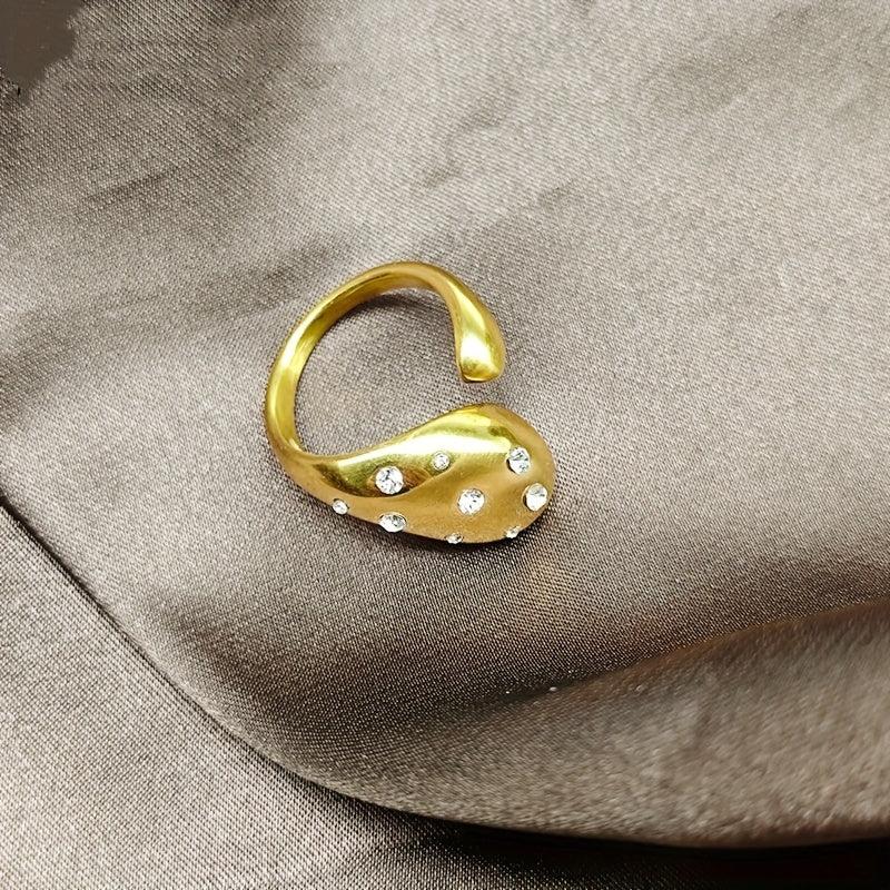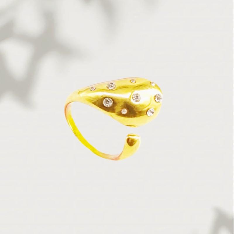 Elegant and sexy teardrop ring for women crafted with 18K golden plated stainless steel and glass crystal accent. Perfect for daily wear and gift giving.