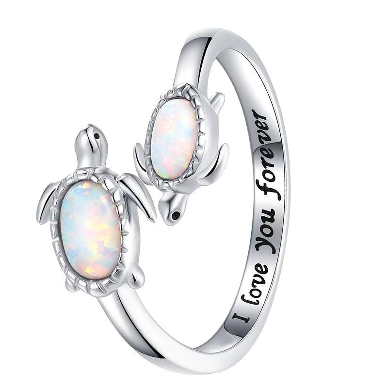 Express your love with this adorable Turtle Ring featuring the letters I LOVE YOU. This adjustable ring is a perfect accessory to add a touch of cuteness to your outfit.