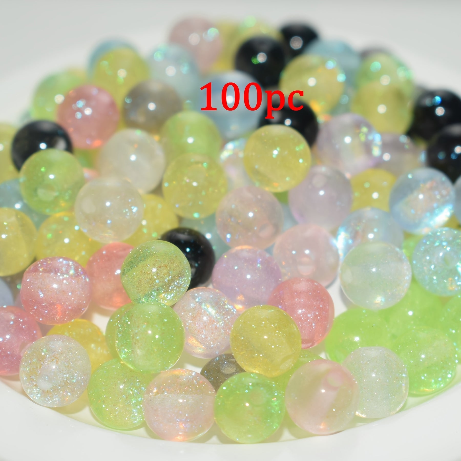 Create sparkling DIY bracelets with this set of 100 glitter beads. Ideal gift for mothers or craft enthusiasts. Sparkle and shine in your jewelry designs.