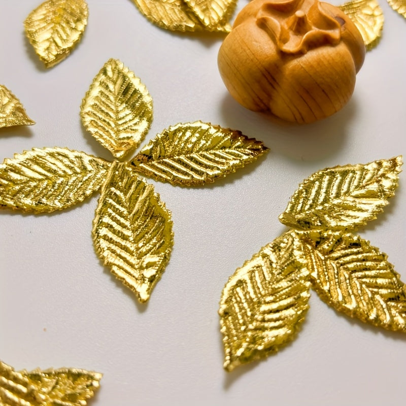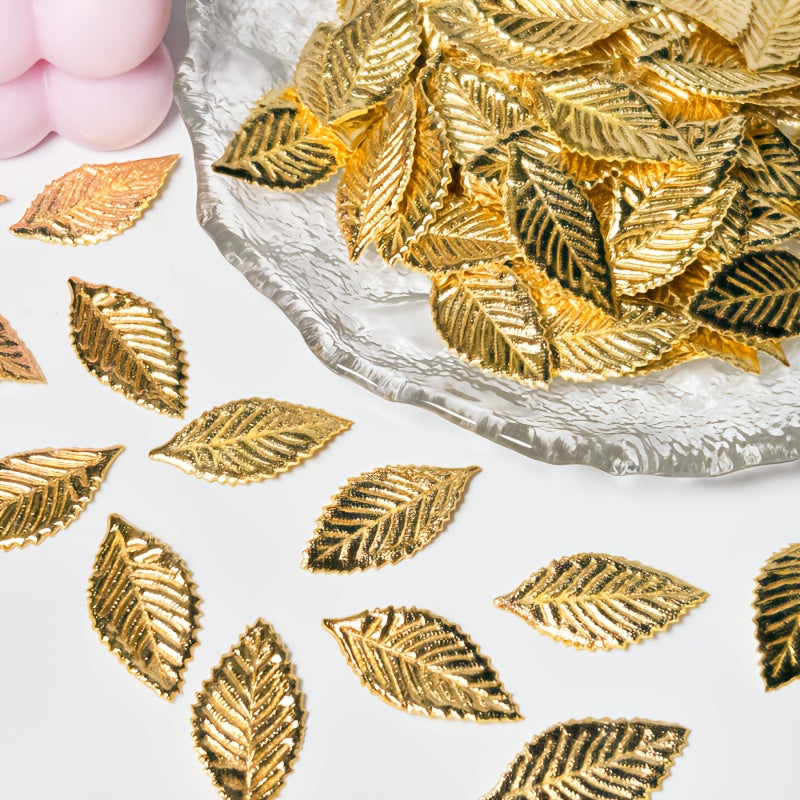Enhance your wedding decorations with these glossy golden leaf patches. Perfect for DIY projects, party embellishments, and formal event decor.