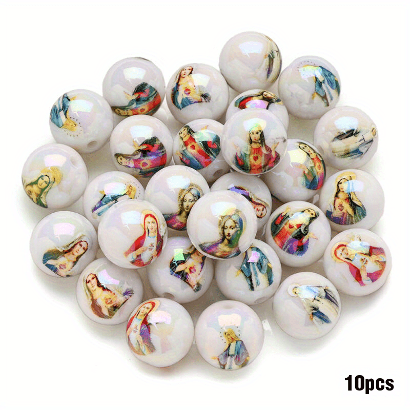 • Includes 10pcs of 16mm acrylic painted religious figure beads