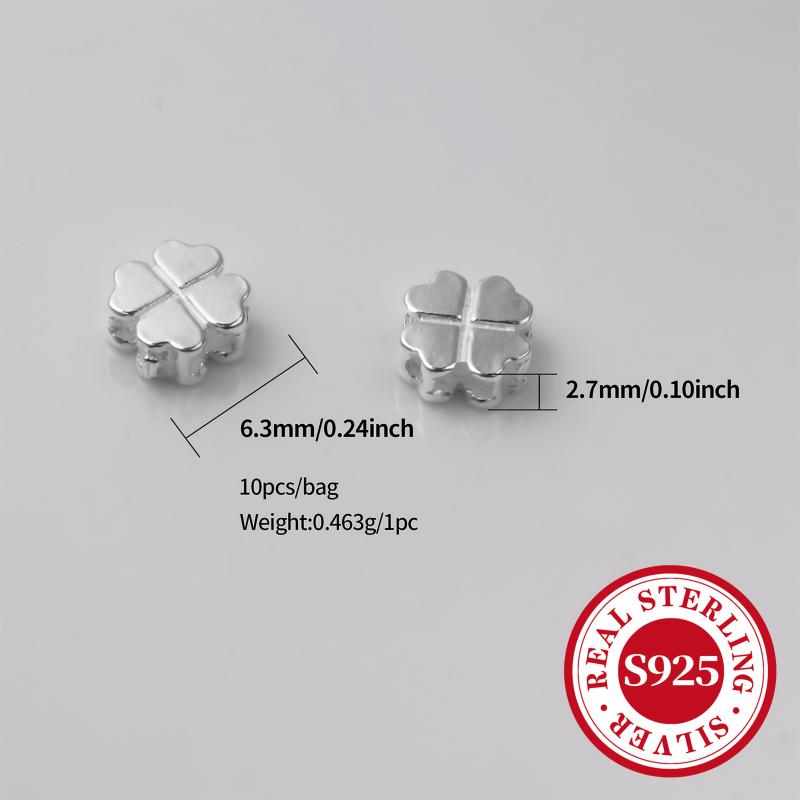 Get creative with this pack of 10 clover spacer beads made of 925 sterling silver. Perfect for making your own unique beaded bracelets, necklaces, and more.
