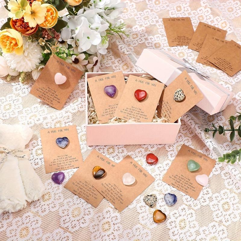 These pocket hug cards feature heart shaped crystal stones to give as tokens of love and comfort. Made of synthetic material, each card is polished and ready to share.