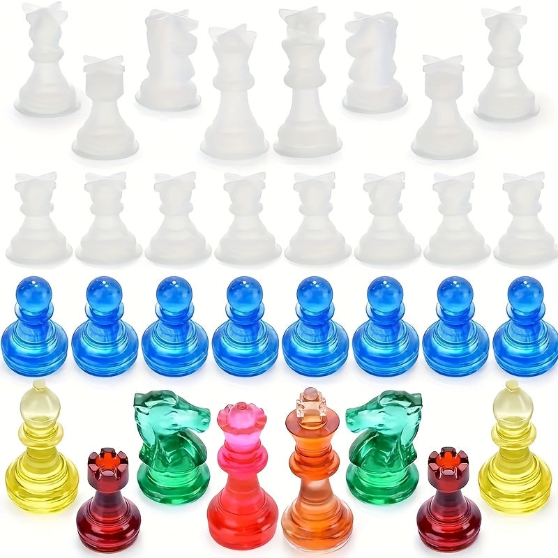Create your own crystal epoxy resin chess set with this complete mold set. Perfect for crafting enthusiasts and chess lovers.