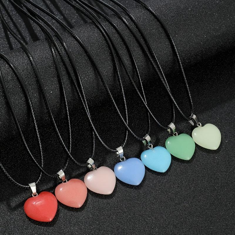 Create stunning DIY jewelry with these heart-shaped crystal pendants that glow in the dark. Each set includes 14 natural and synthetic charms with an adjustable faux leather cord and a storage bag for easy organization.