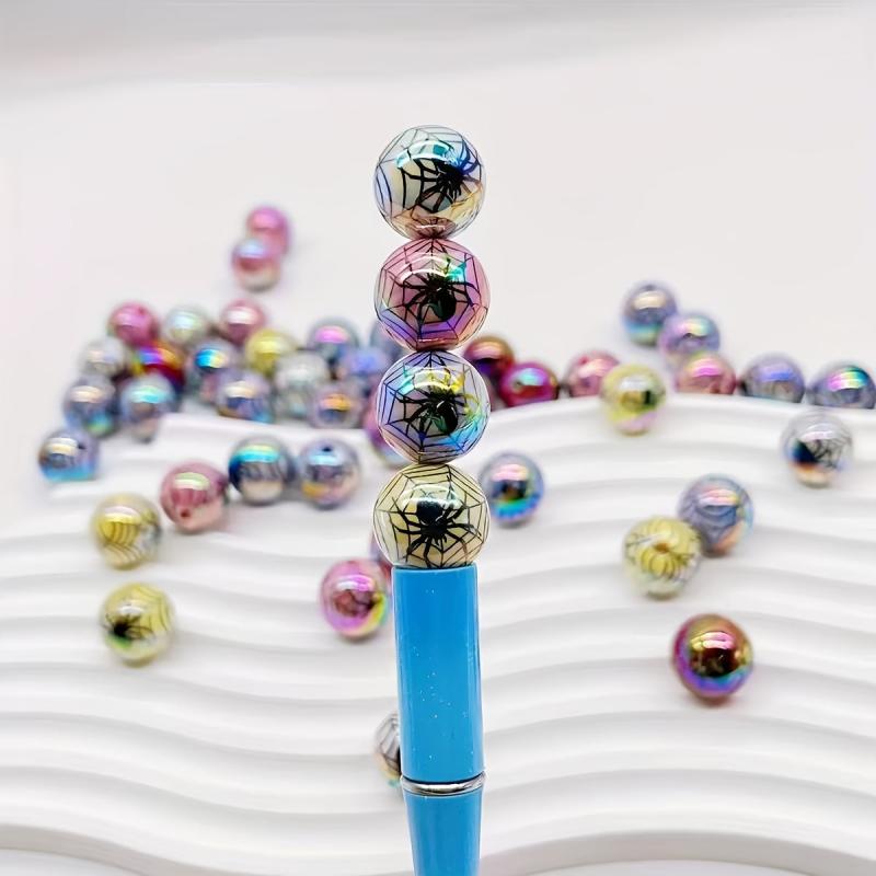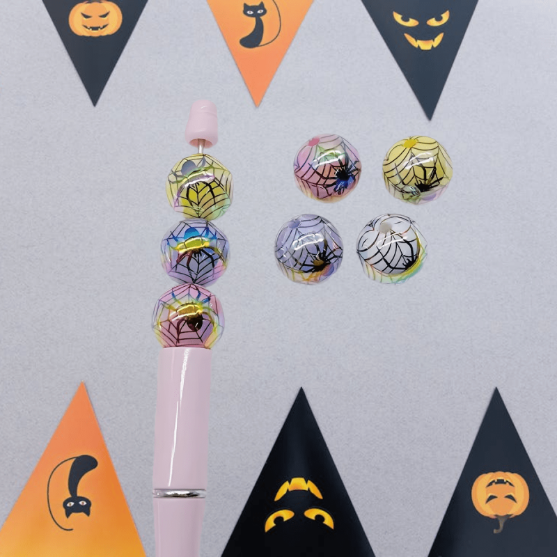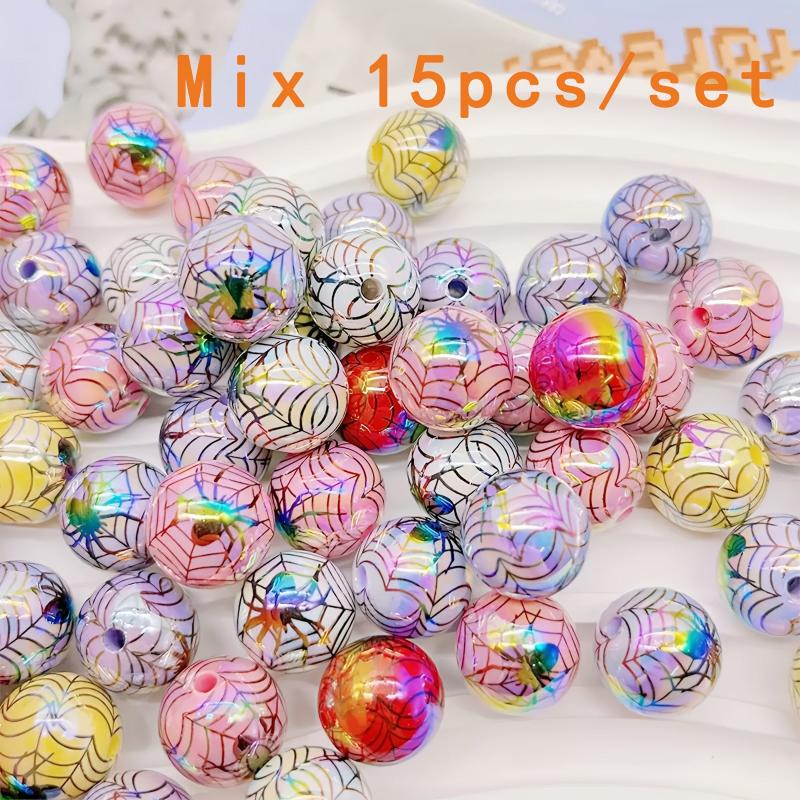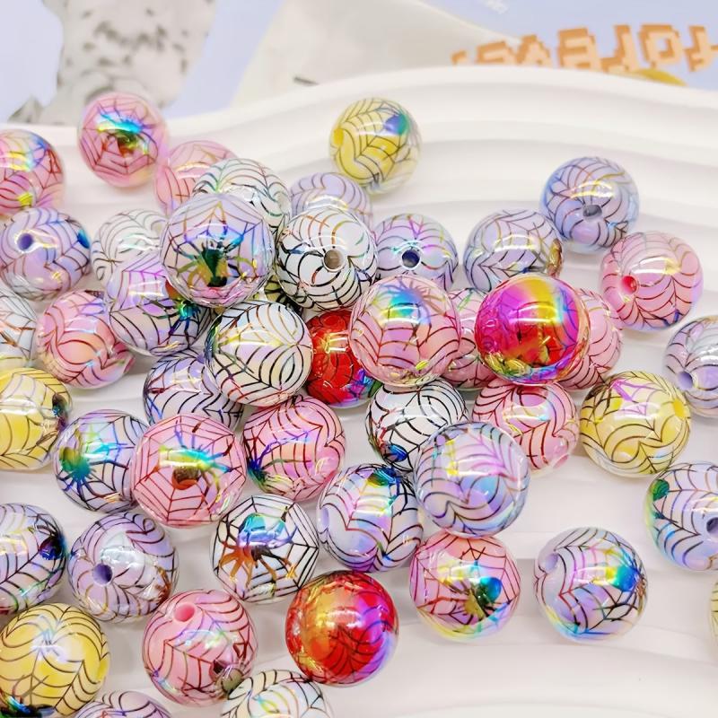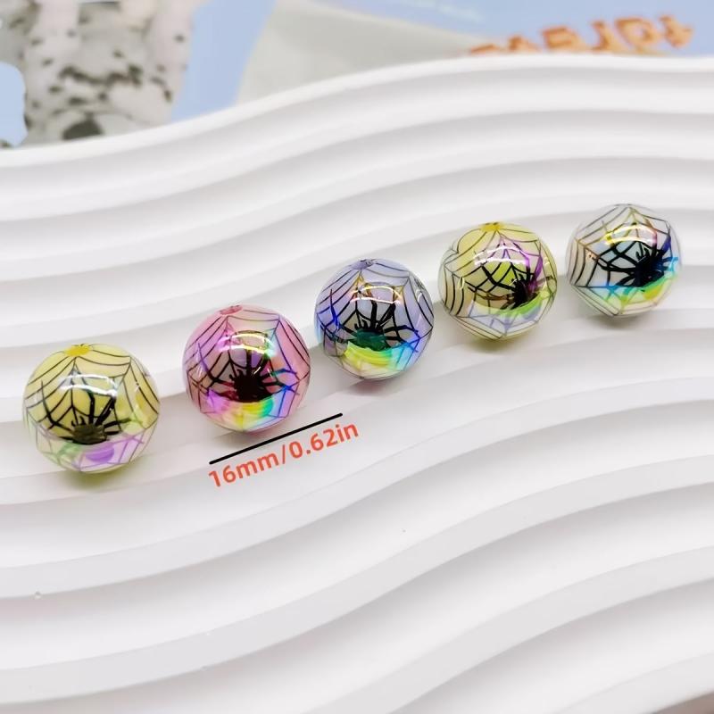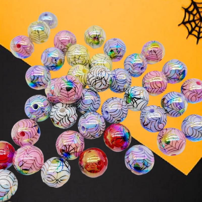 Get into the spooky spirit with these 15pcs dark gothic acrylic round beads featuring spider web prints. Perfect for Halloween jewelry making and party decorations.