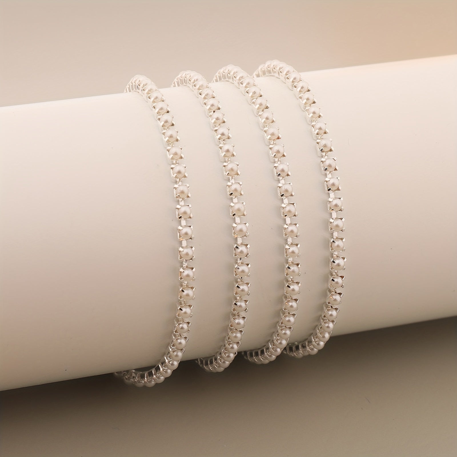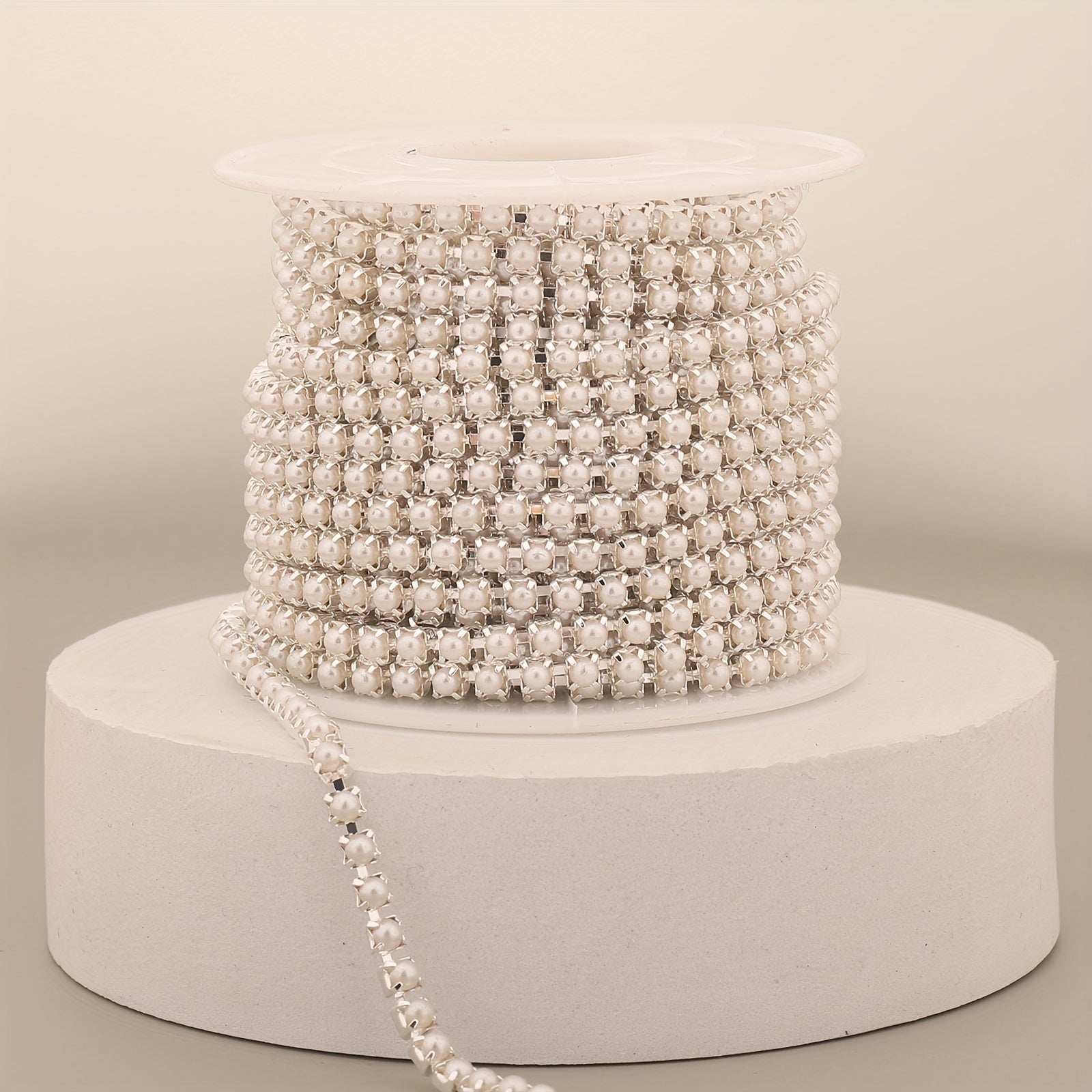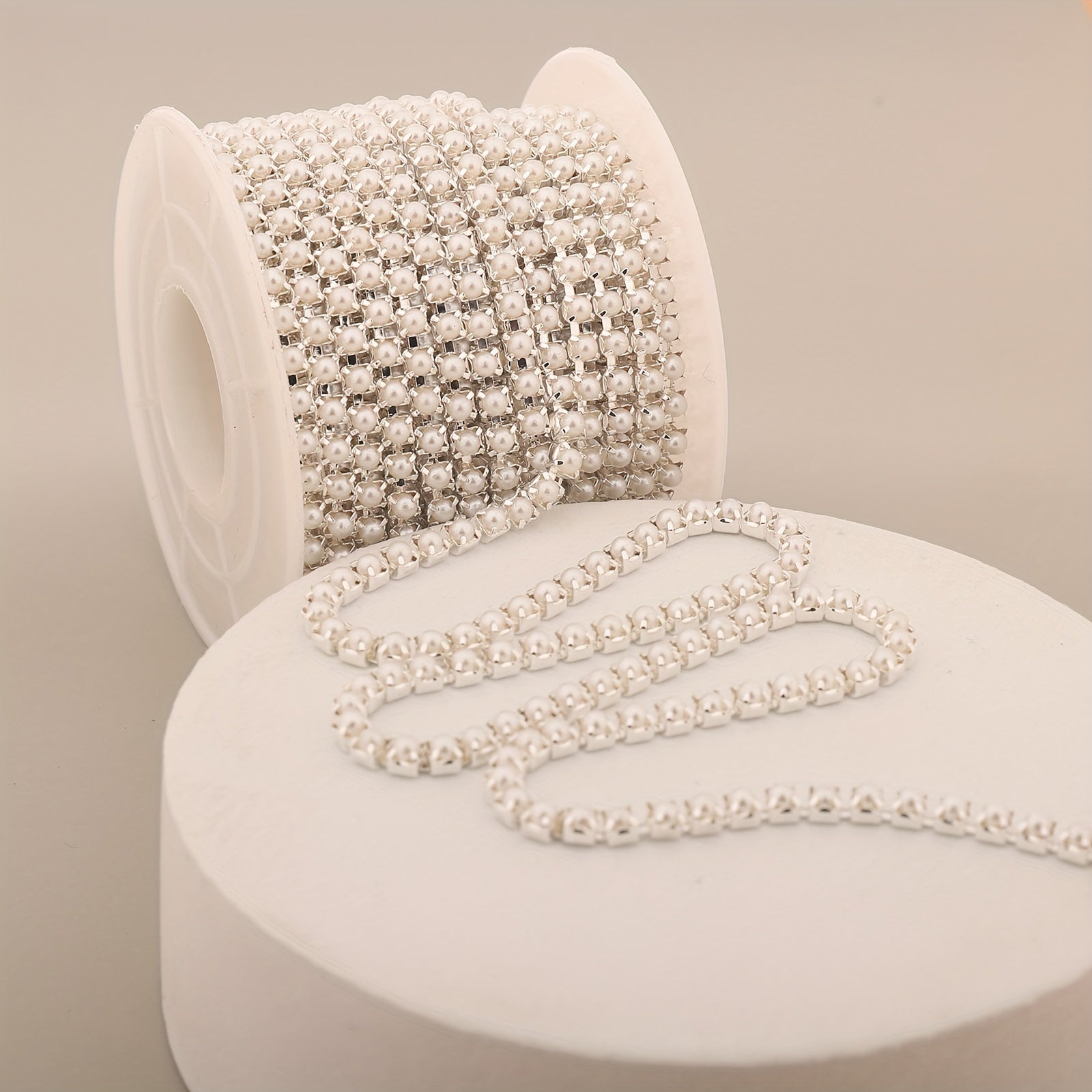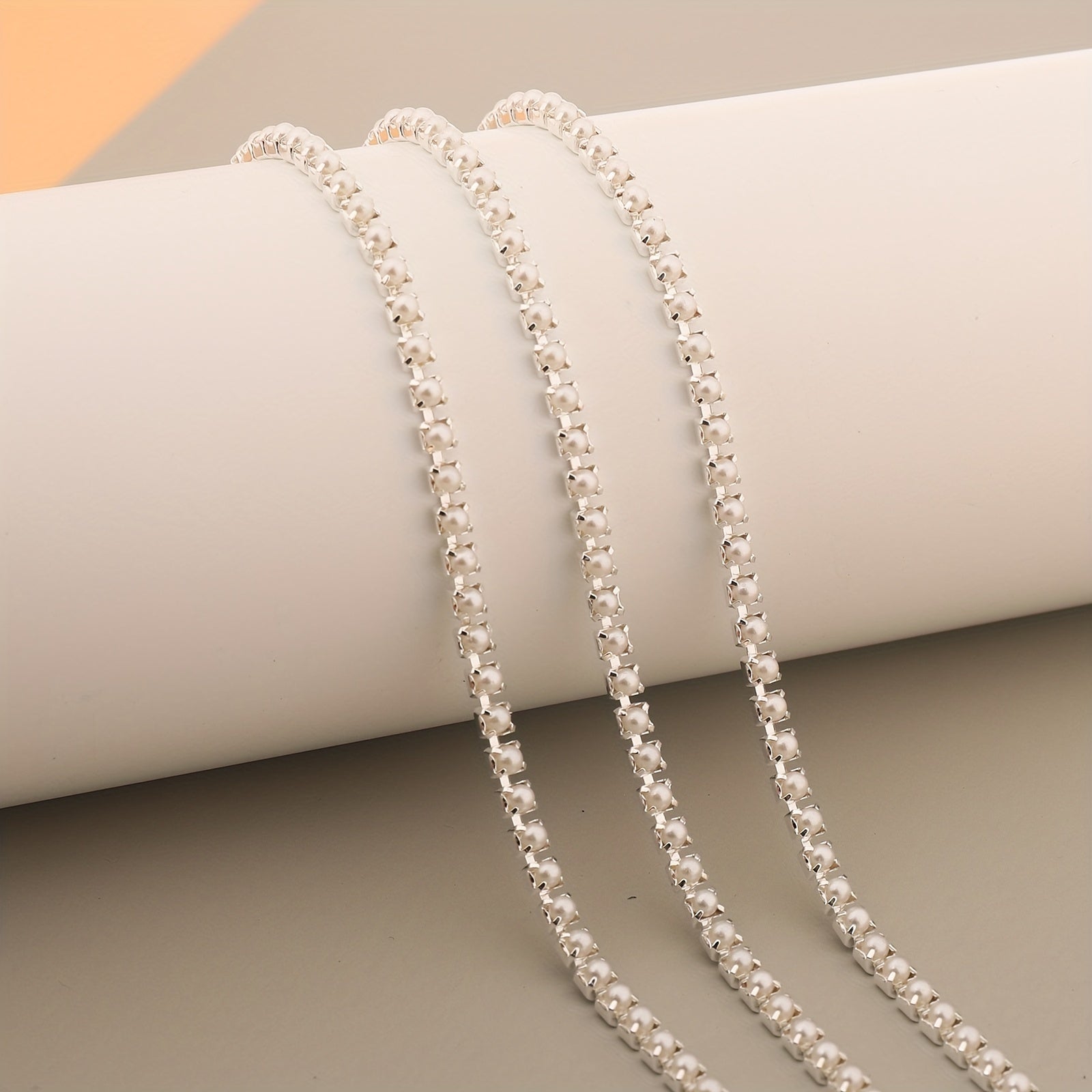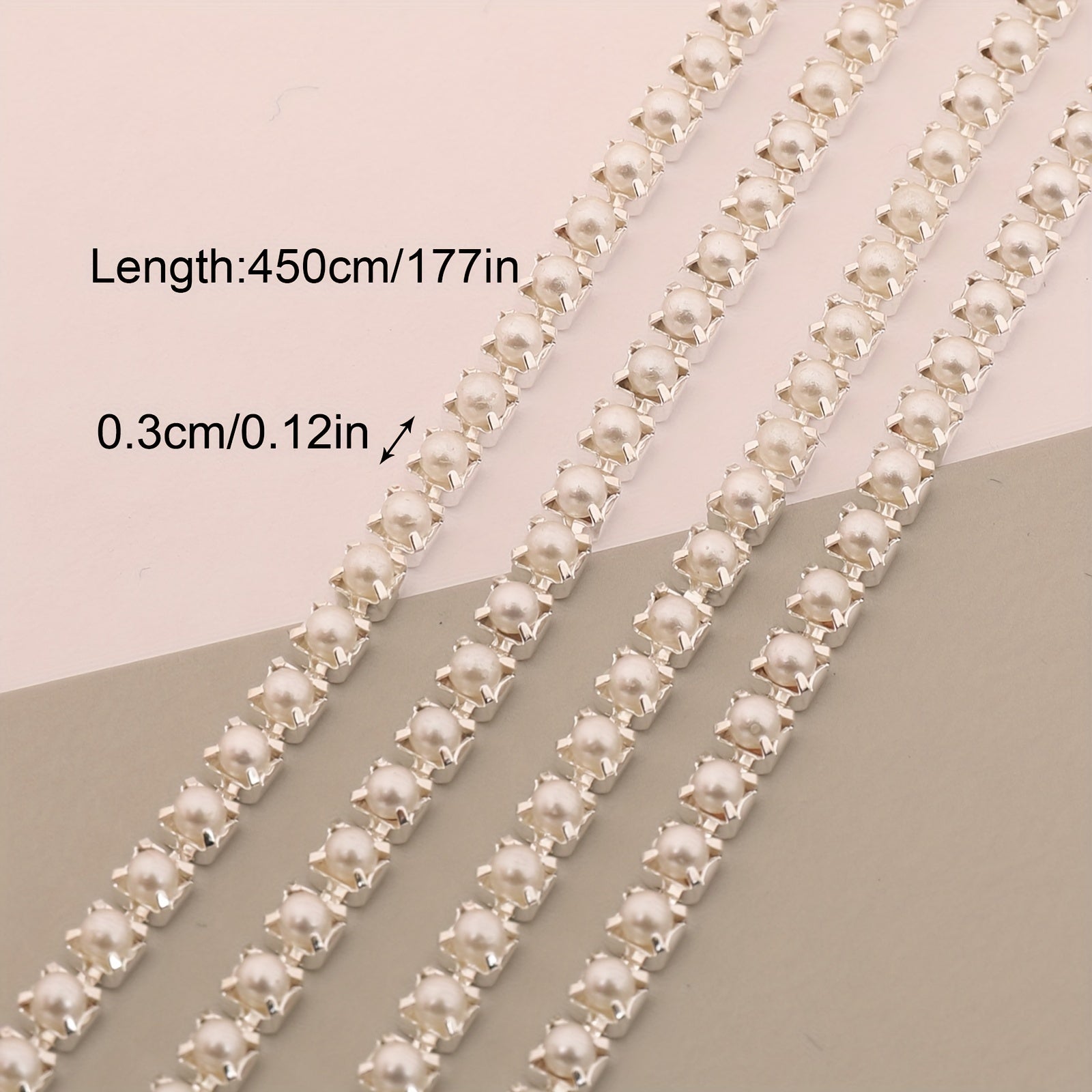 Add a touch of elegance with this 17-inch silver pearl chain nail art decoration ideal for clothing, mobile phone cases, and more.