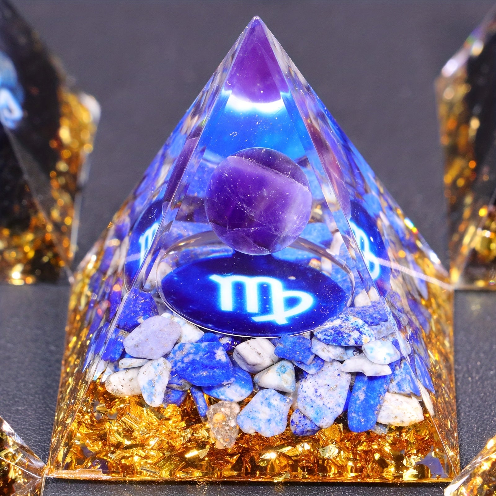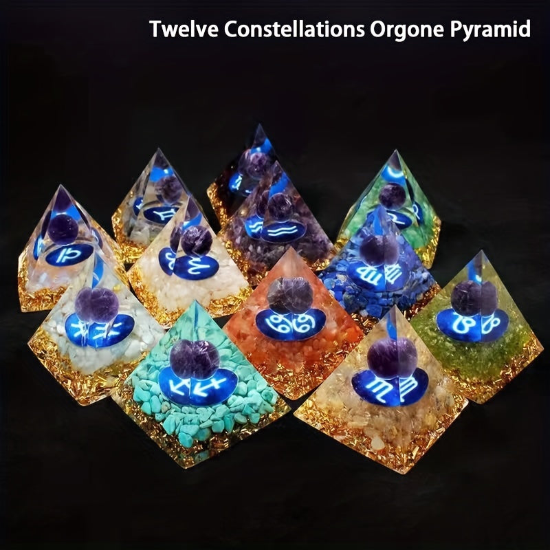 1pc 12 Zodiac Orgone Pyramid Amethyst Peridot Healing Crystal Energy