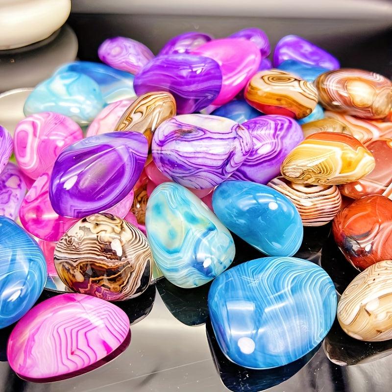 Each piece features a unique pattern with irregular cracks. Random selection of pink, purple, red, and striped agate.
