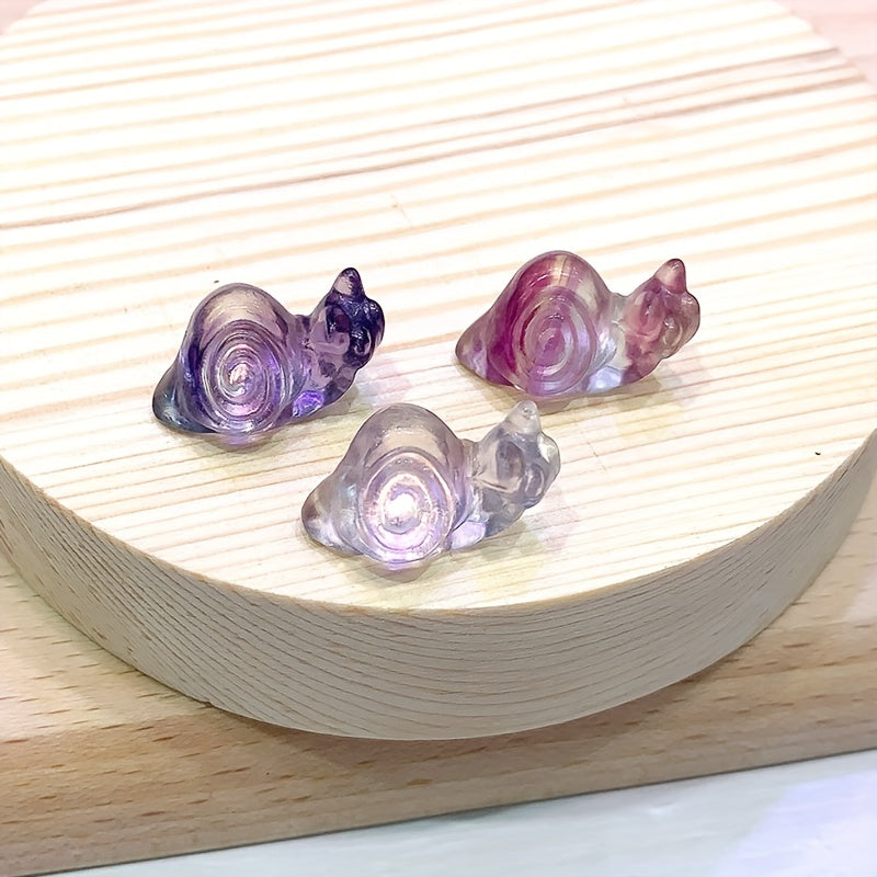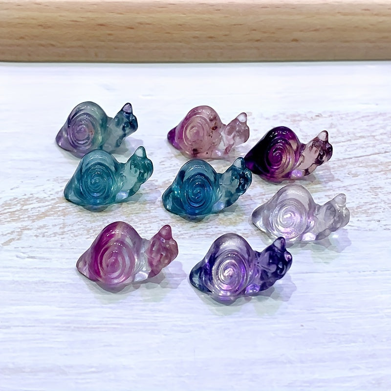Bring the calming and protective energies of fluorite with this small snail carving. Perfect for healing and energy work.