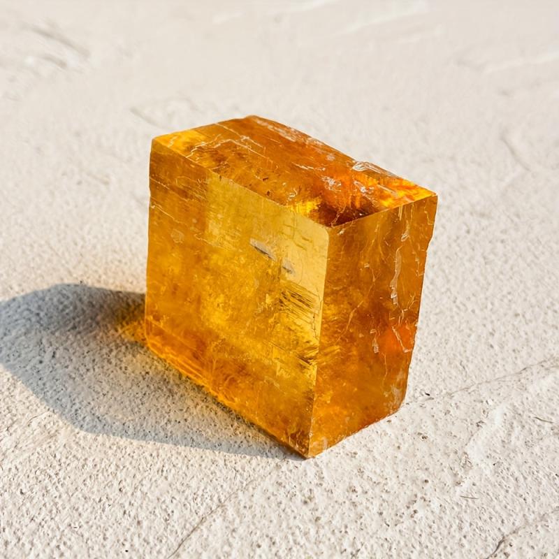 This Iceland Spar Clear Optical Calcite Cube is a rough honey calcite specimen that exhibits vibrant colors and unique properties.