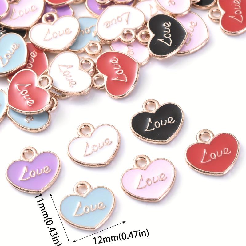 • 20pcs heart-shaped alloy charms with LOVE inscription