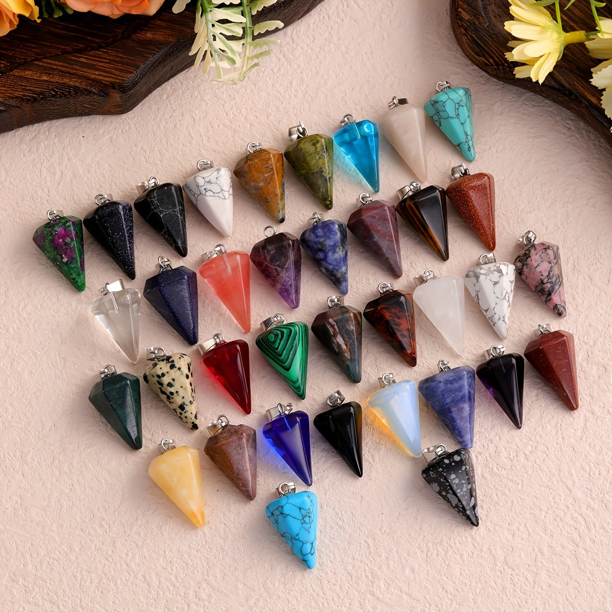 Enhance your jewelry collection with these 20 hexagon pendulum pendants. Each pendant comes with an adjustable cord and a convenient storage bag. Perfect for crafting your own unique necklace designs.