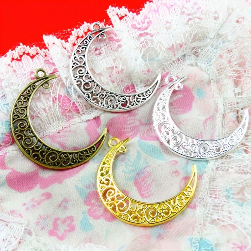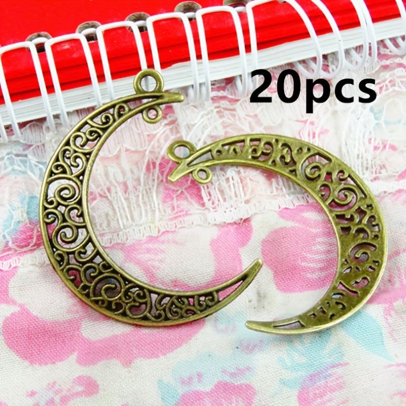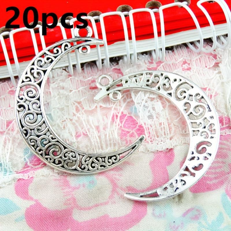 Get this set of 20 hollow moon pendants for crafting bracelets, necklaces, earrings, and keychains. Perfect for DIY jewelry projects.
