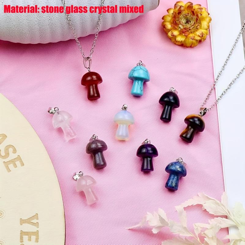 20pcs Mushroom Crystal Pendant Necklaces, Assorted Gemstone Charms