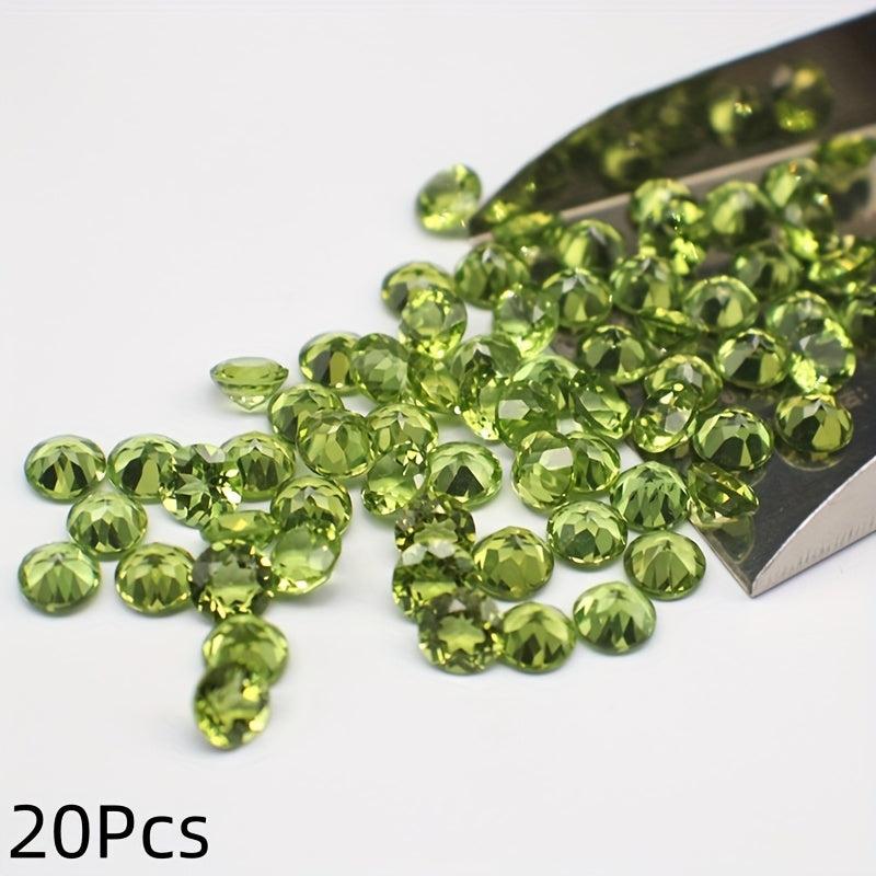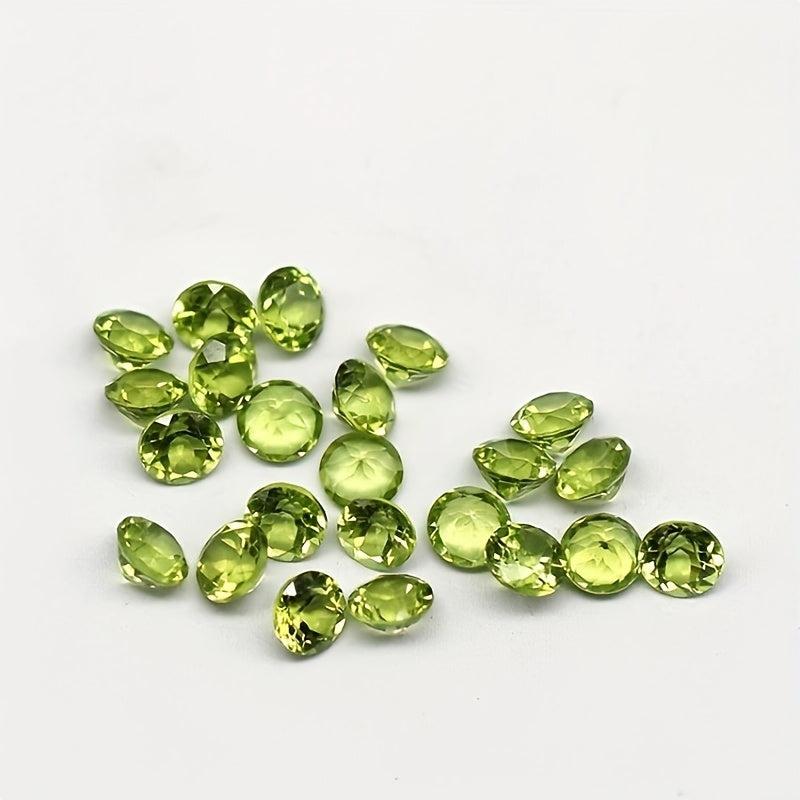 Enhance your jewelry creations with this set of 20 round Peridot cabochons. These natural stones are perfect for adding a pop of color and elegance to your designs.