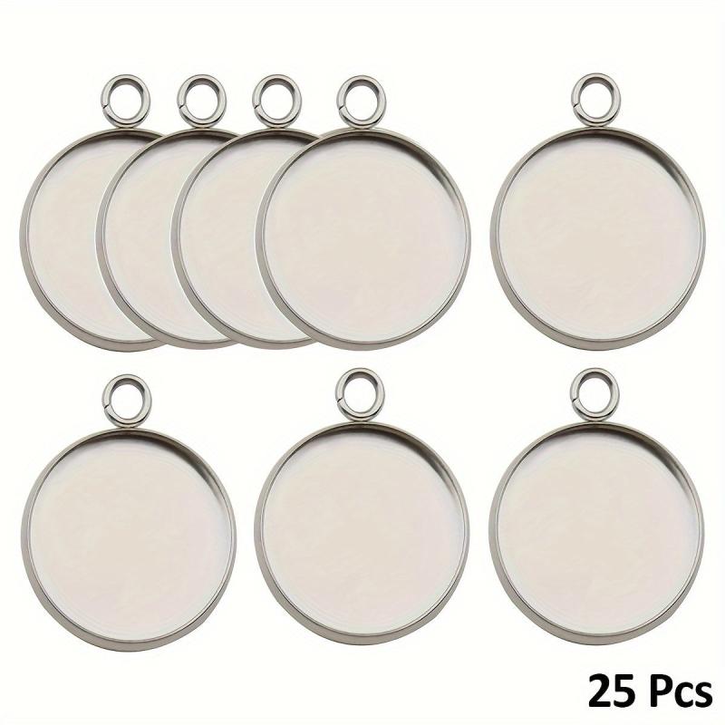Create beautiful jewelry pieces with these 25 stainless steel round blank frame pendant trays. Each tray has a convex setting for easy customization.