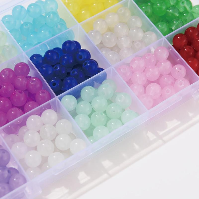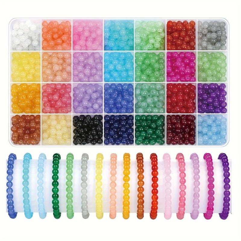 This vibrant glass bead set includes 28 grid glass jelly beads in 6mm round double needle beads. The set features 28 vibrant colors including pink, green, yellow, orange, red, purple, and clear.