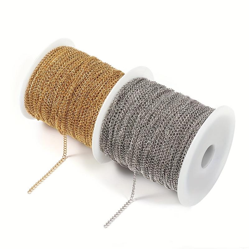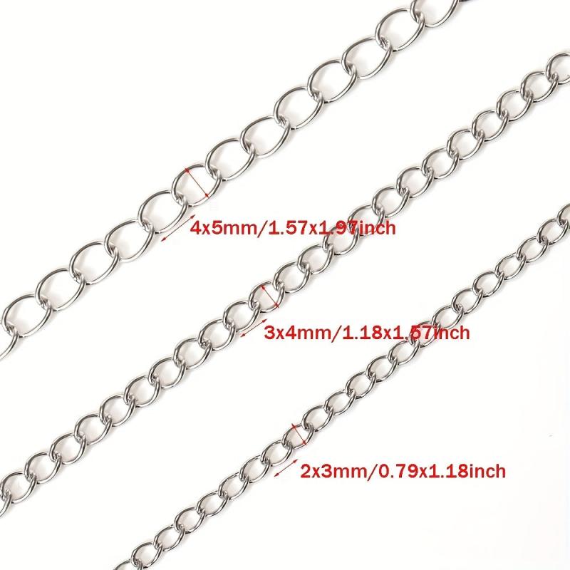 This set includes 2 meters of stainless steel extension chains in 2, 3, and 4mm sizes. Perfect for adding length to your necklaces or bracelets.