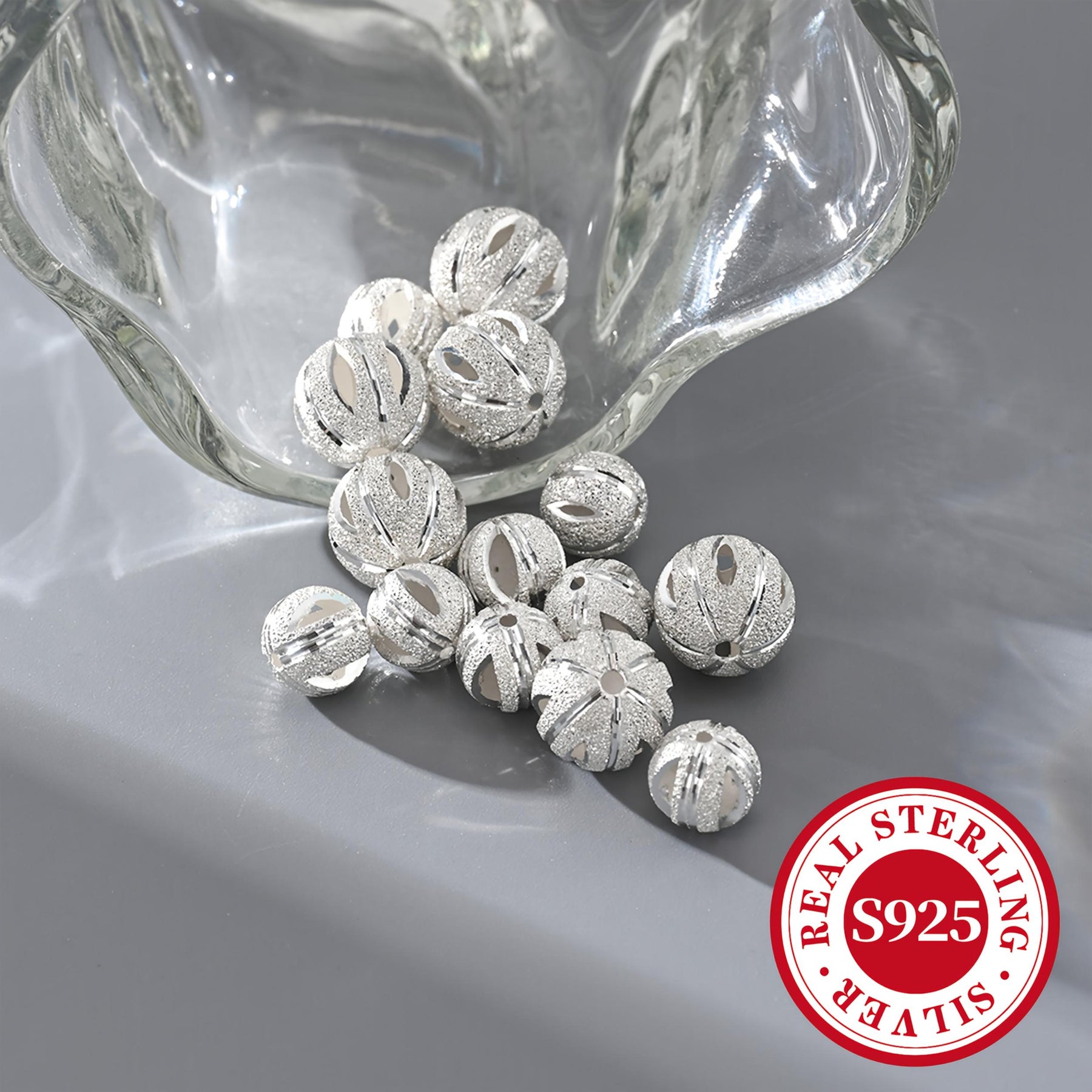 These beads are made of high-quality S925 sterling silver with a beautiful matte finish. Each bead is hollow and engraved, adding a unique touch to your DIY jewelry projects.