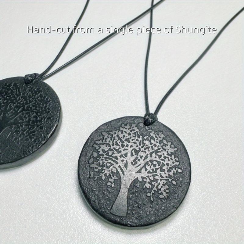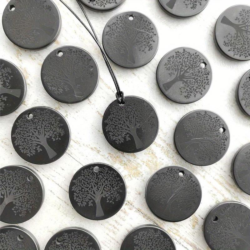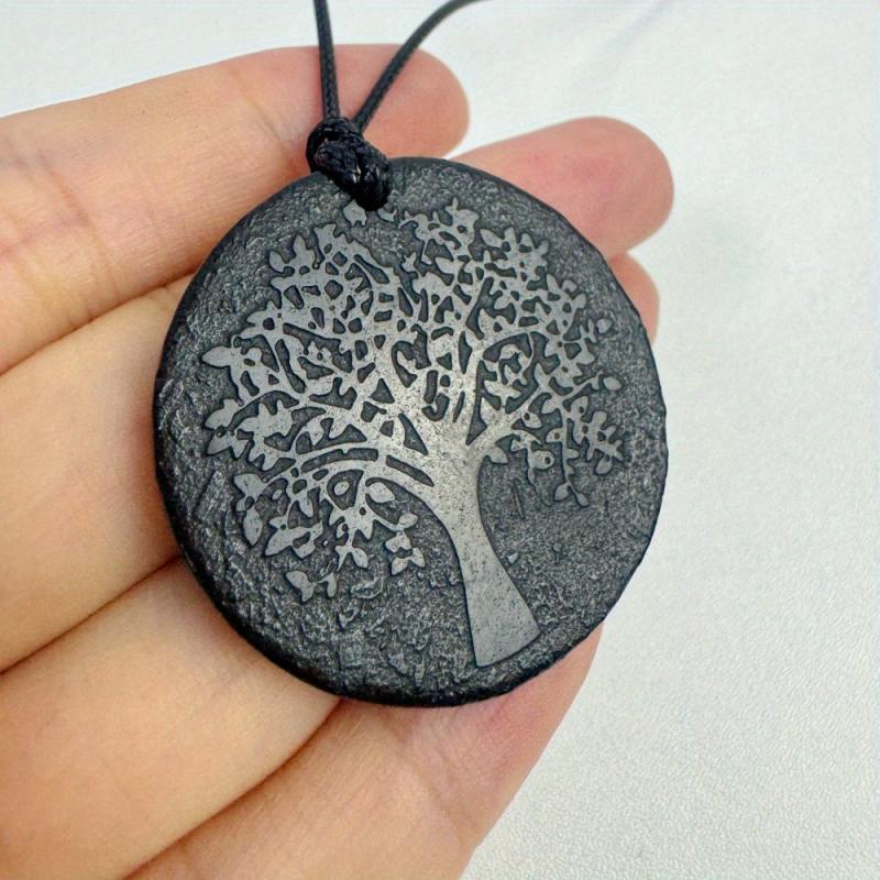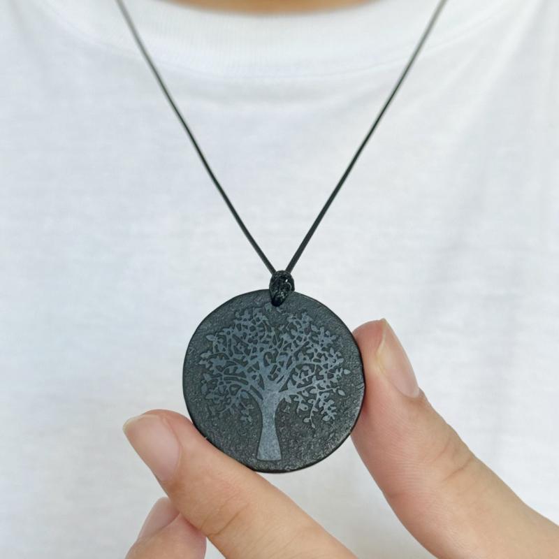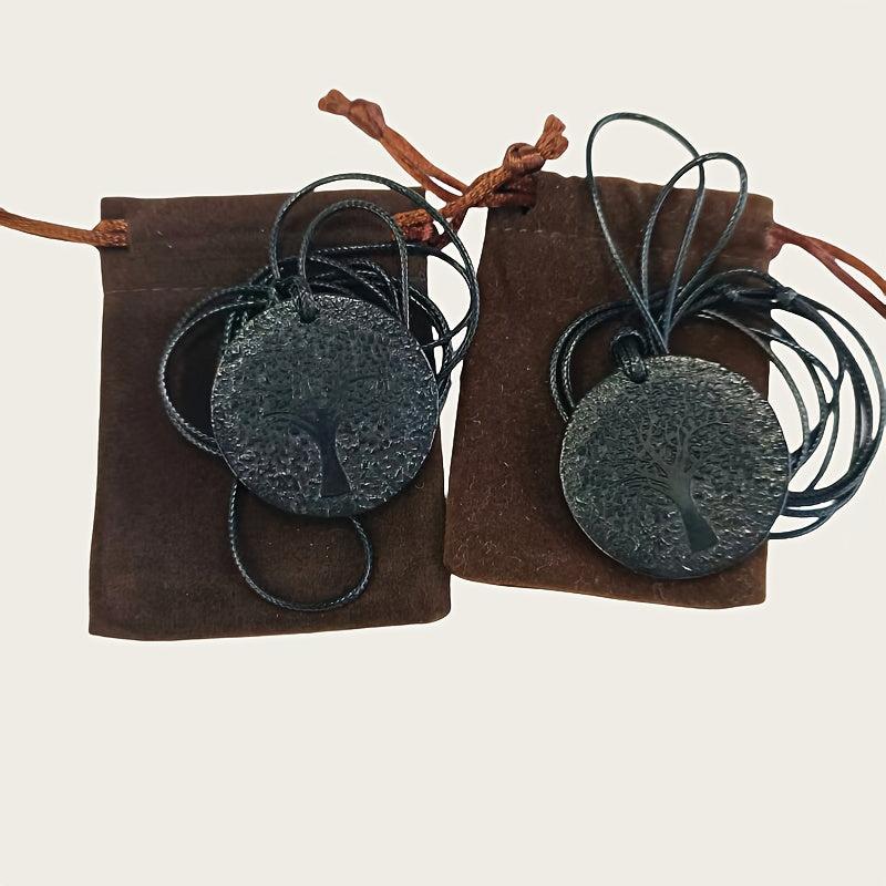Add a touch of nature to your look with these handmade Karelian Shungite pendants. Each pendant features a Tree of Life engraving and comes with a pouch for safekeeping. Perfect for reiki, yoga, and meditation.