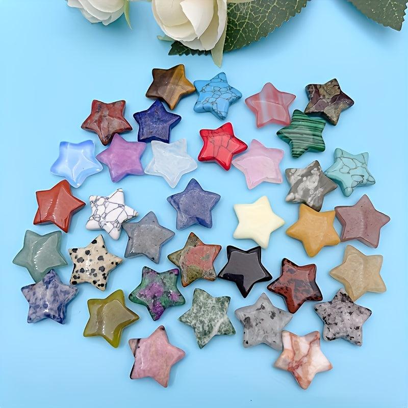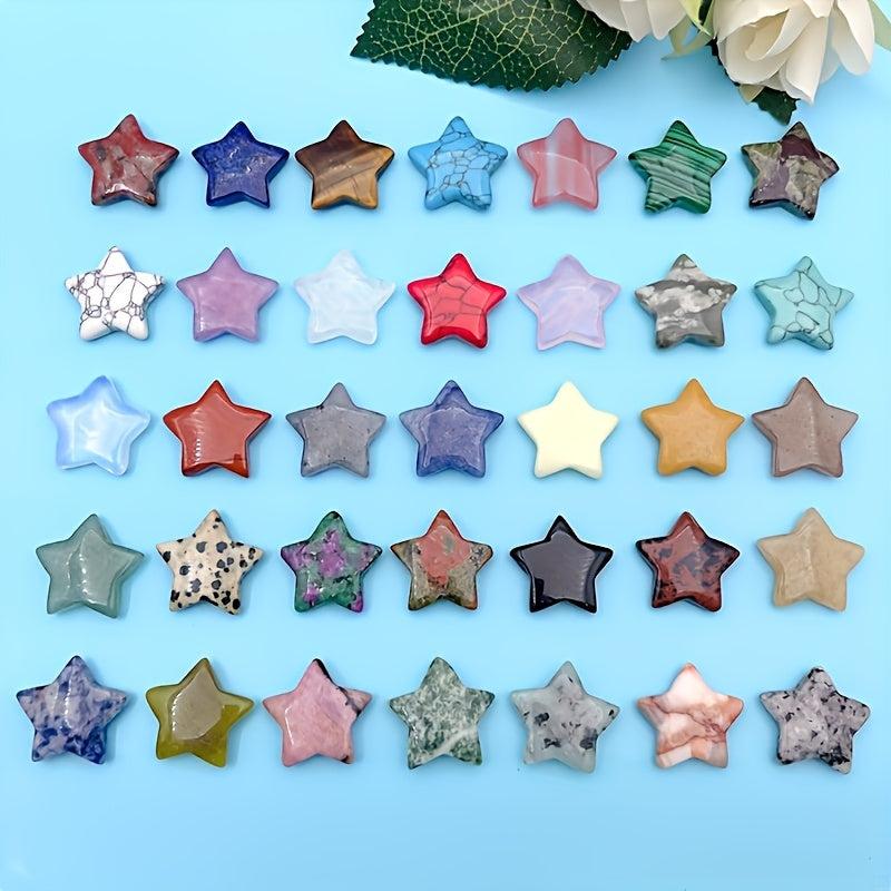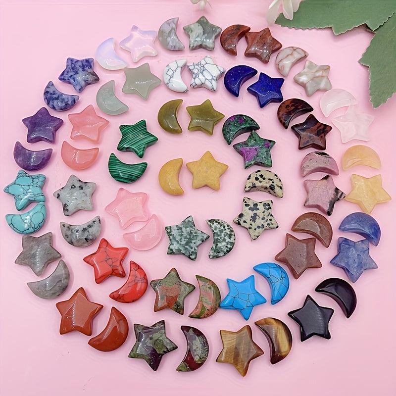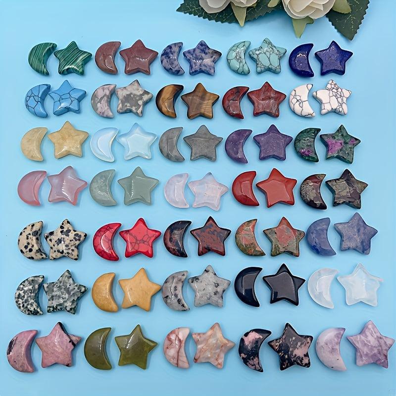 This set includes 30 tiny artificial gemstone moon and star shaped worry stones. Perfect for crafting unique jewelry or as a gift for Valentine's Day.