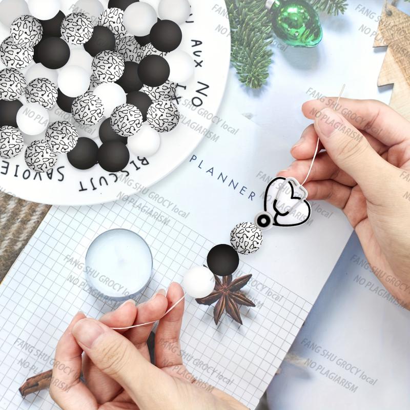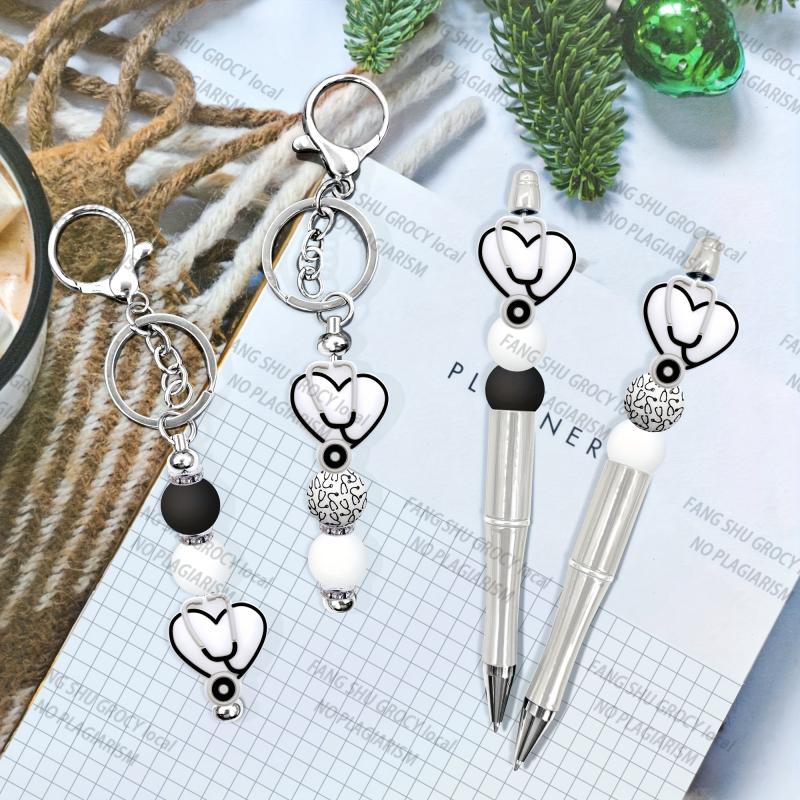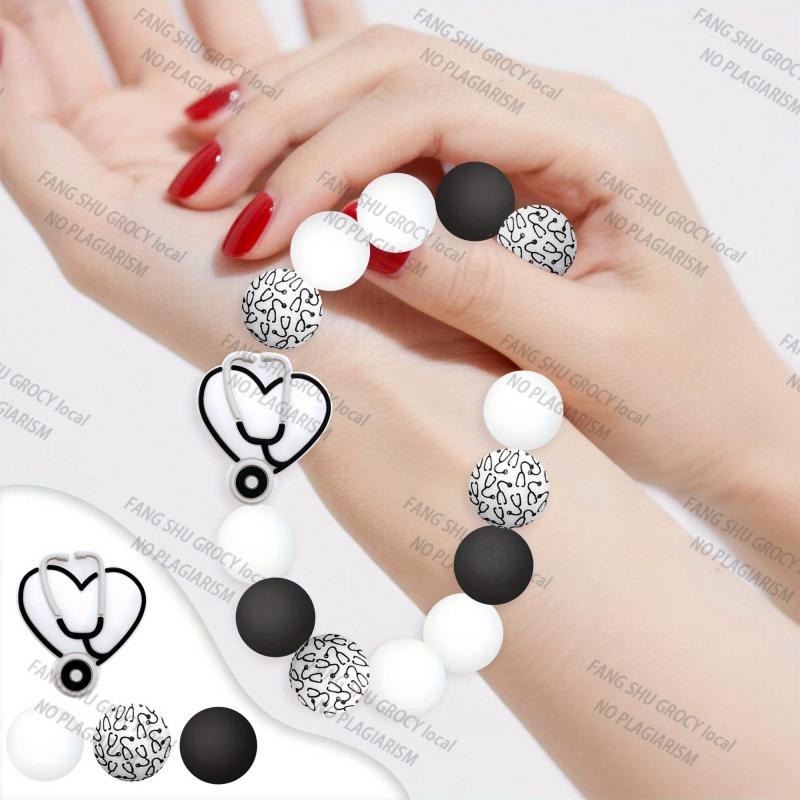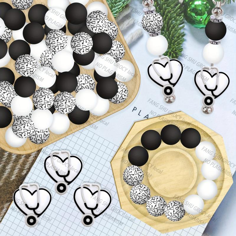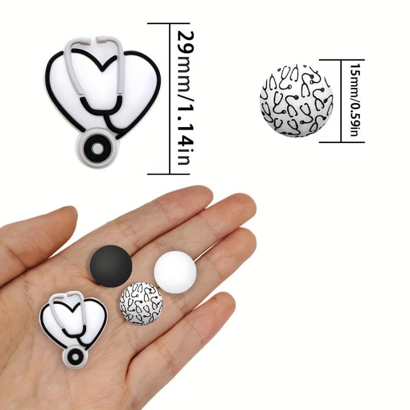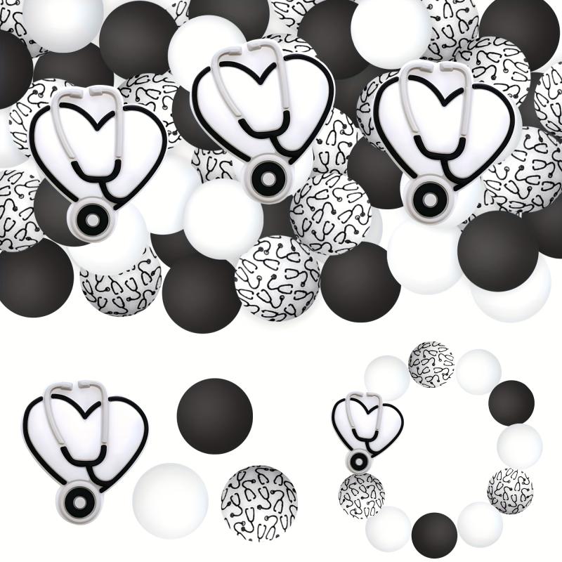 This set includes 30 heart-shaped silicone beads with doctor's tee print design. Perfect for crafting jewelry or medical-themed projects.